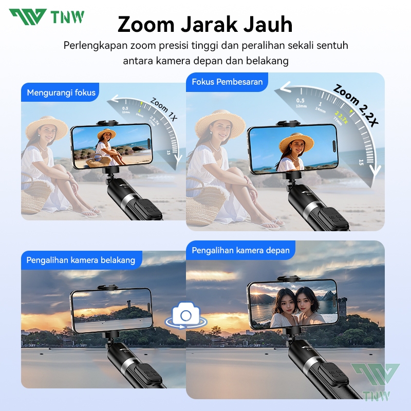 TNW PP1 Bluetooth Tongsis Tripod Pop Up Selfie Stick Portable Aluminium Quadpod Tongsis Fill Light Magnetik Remote