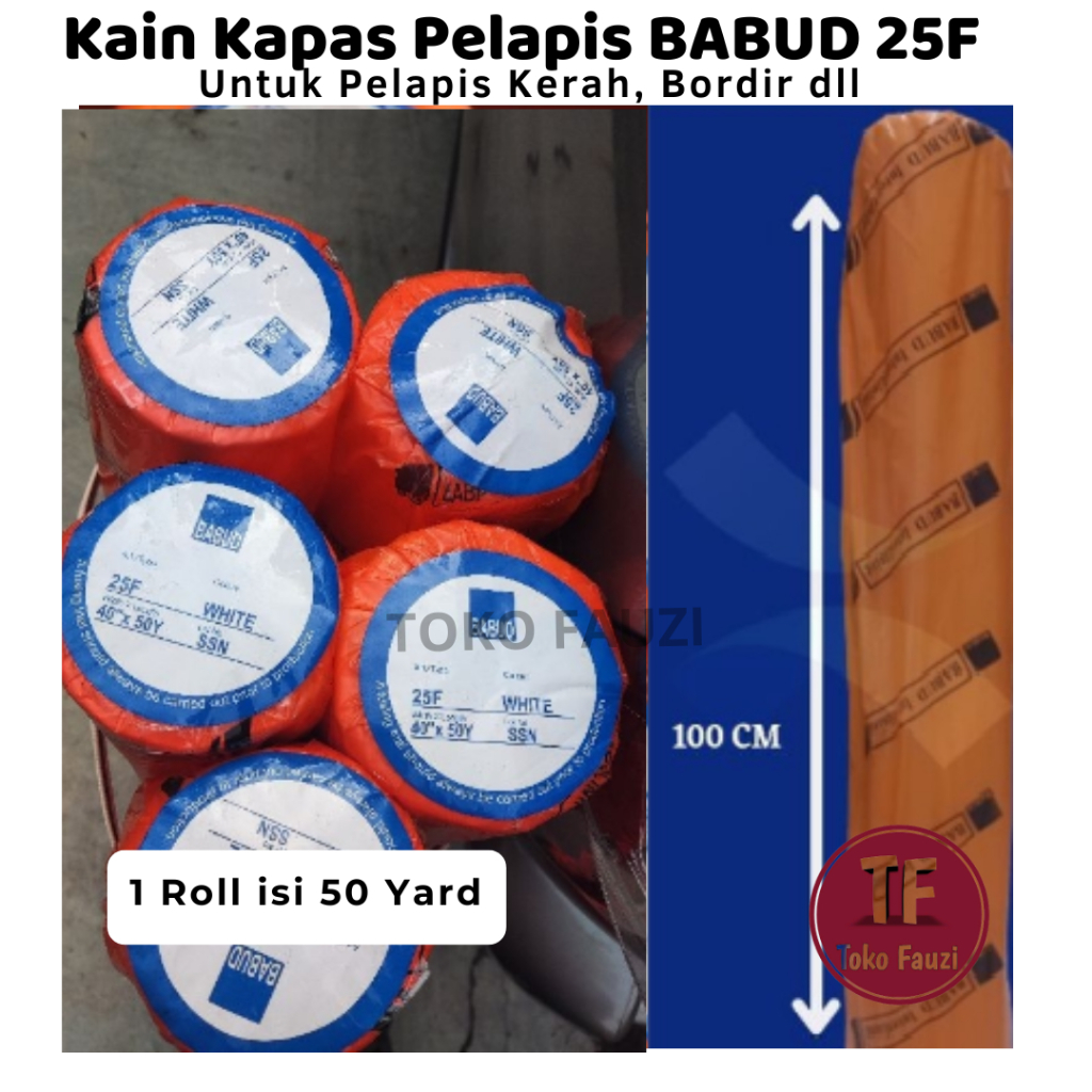 Kain keras kapas Babud 25F Wh ada lem Harga 1 Roll=50Yard Lebar 1m Kain Keras Untuk Kerah