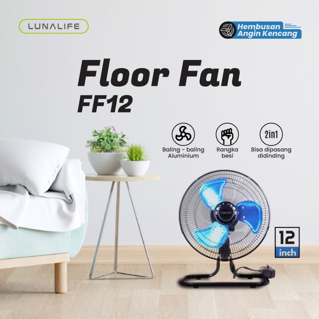 LUNALIFE Kipas Angin FF12 Alumunium 2in1 Tempel Dinding/Duduk 12 Inch 3 Level Kecepatan Hembusan Angin Kencang
