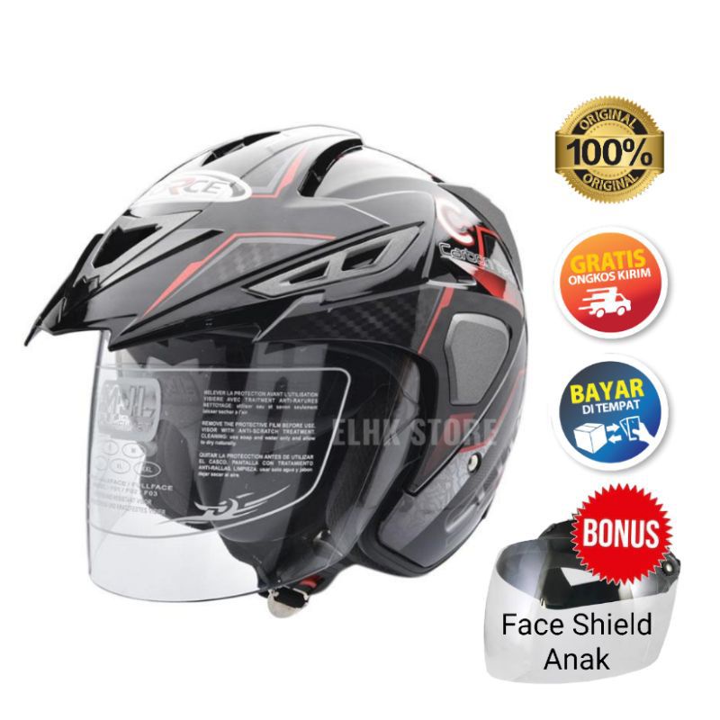 HELM MOTOR SNI FORCE SU 12 HELM MOTOR SNI HALF FACE DOUBLE VISOR SIZE M L XL