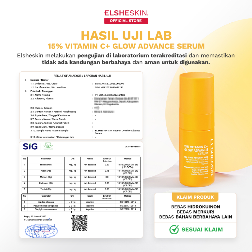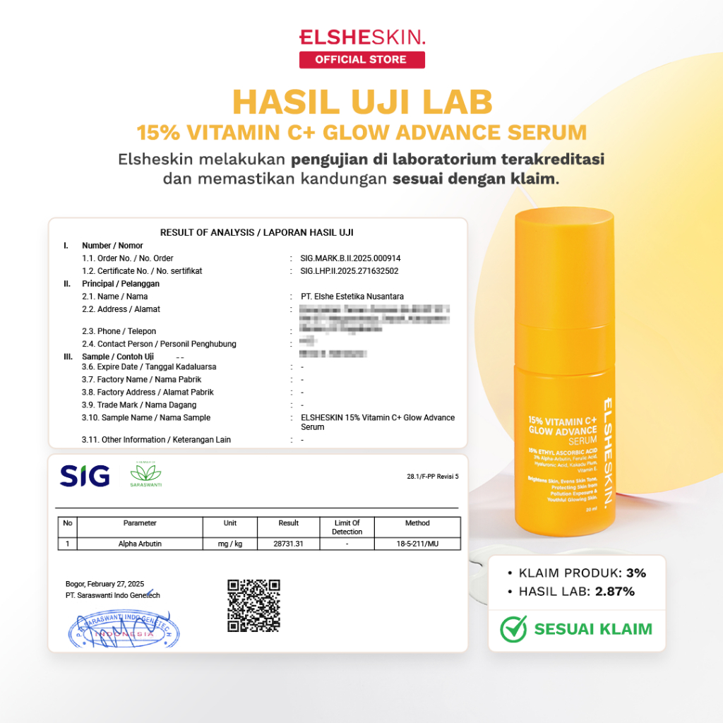 Serum Vitamin C Elsheskin Glow Advance 15 PERSEN Cerahkan Kulit Dan Hilangkan Noda