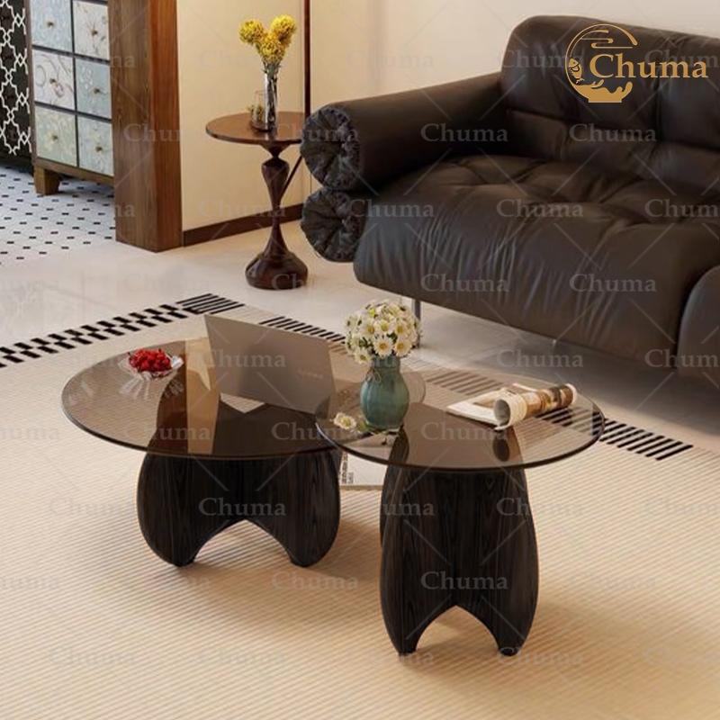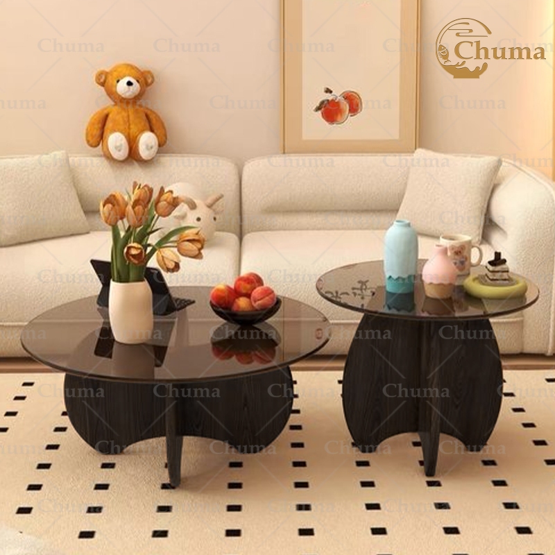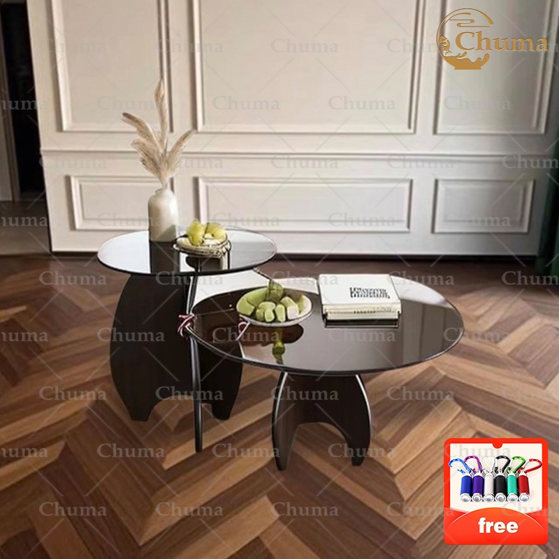 Meja Kopi Kaca Tempered Meja Bulat Aesthetic Meja Ruang Tamu Meja Kopi Gaya Minimalis Modern untuk