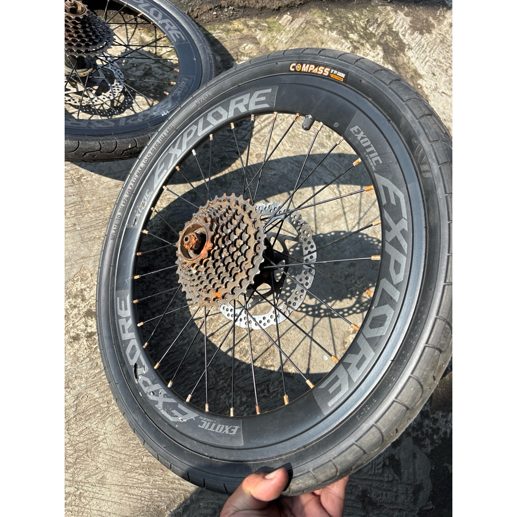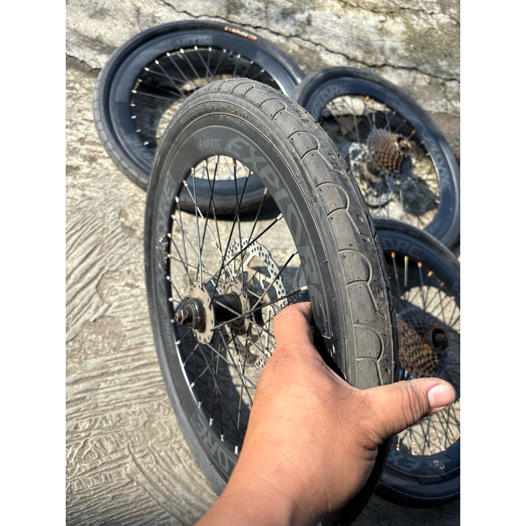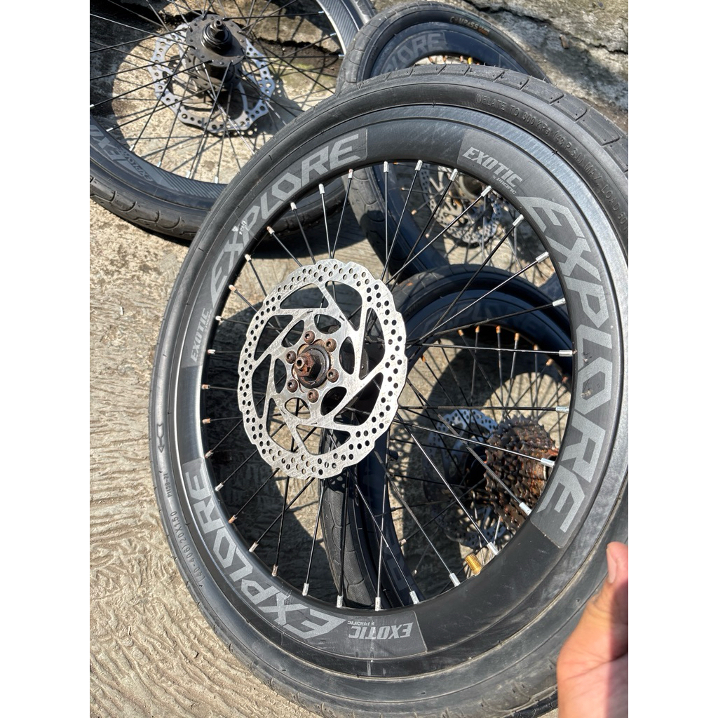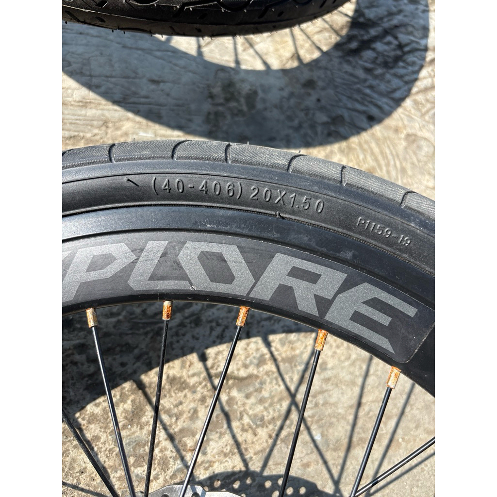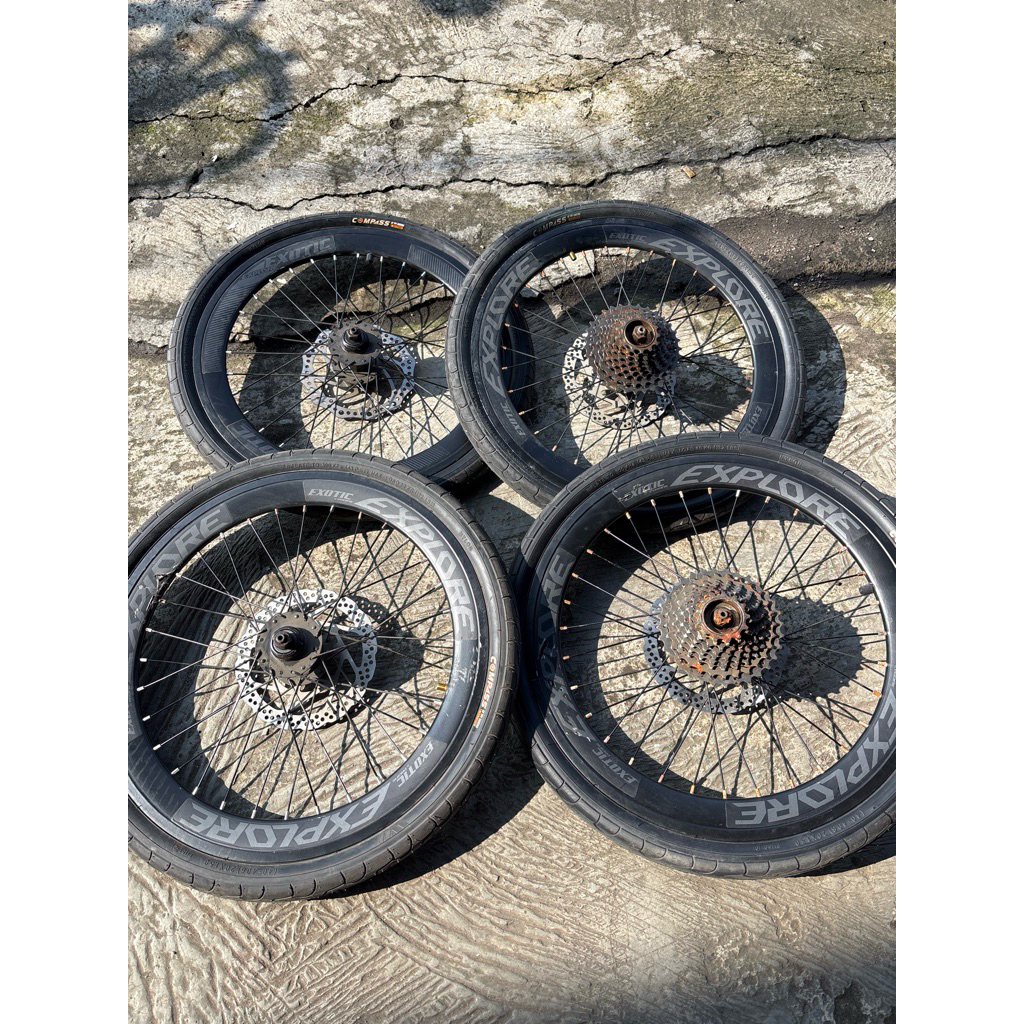 NOS ada LECET KARAT wheelset full set velg sepeda lipat 20 x 1.50 discbrake cakram 9 speed SEPASANG lengkap kumplit luar dalam