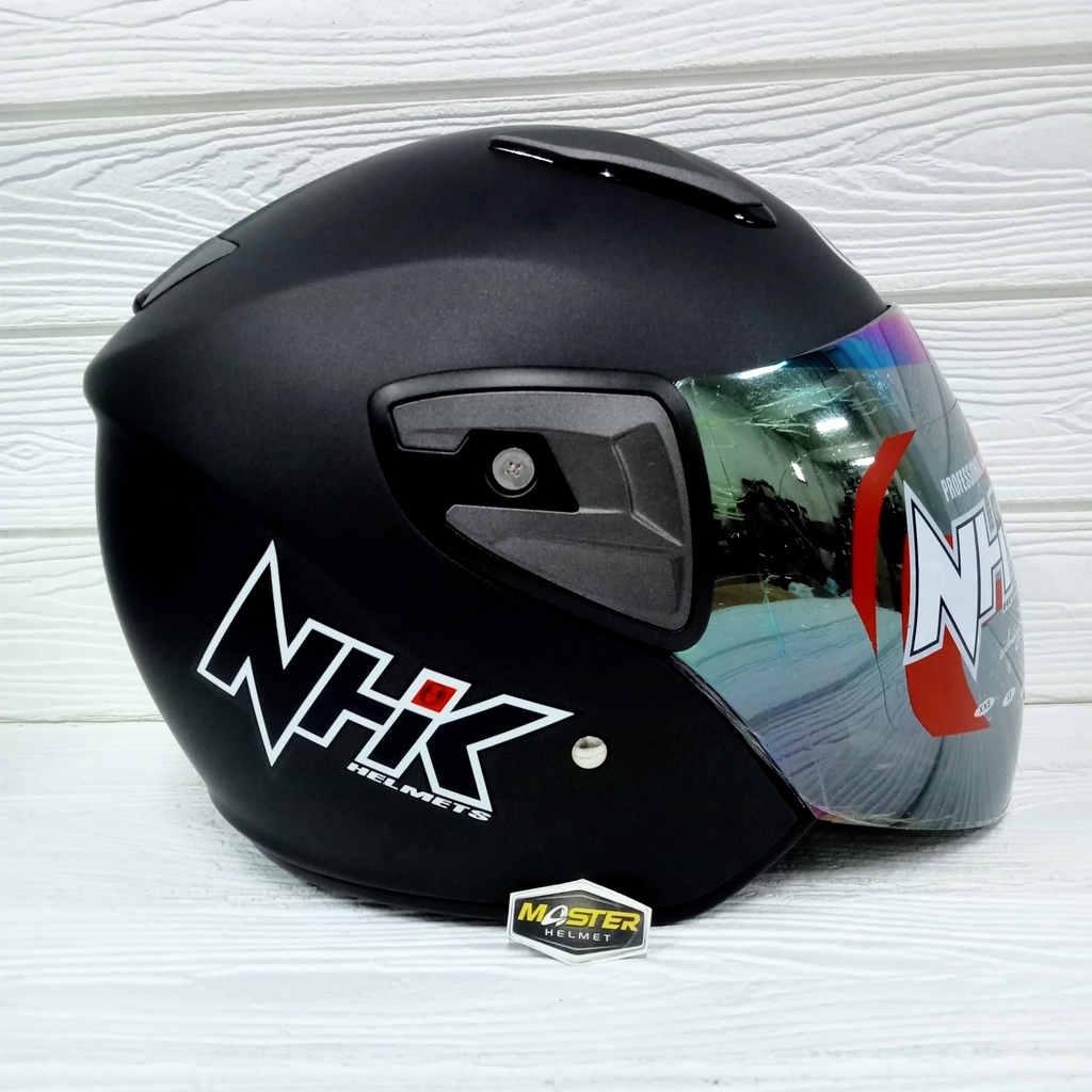 HELM NHK R7 SOLID GUNMATE DOFF ABU DOP HALF FACE SINGLE VISOR - HELEM MOTOR SNI DOT TOURING D3W4SA HELMET KEREN TER