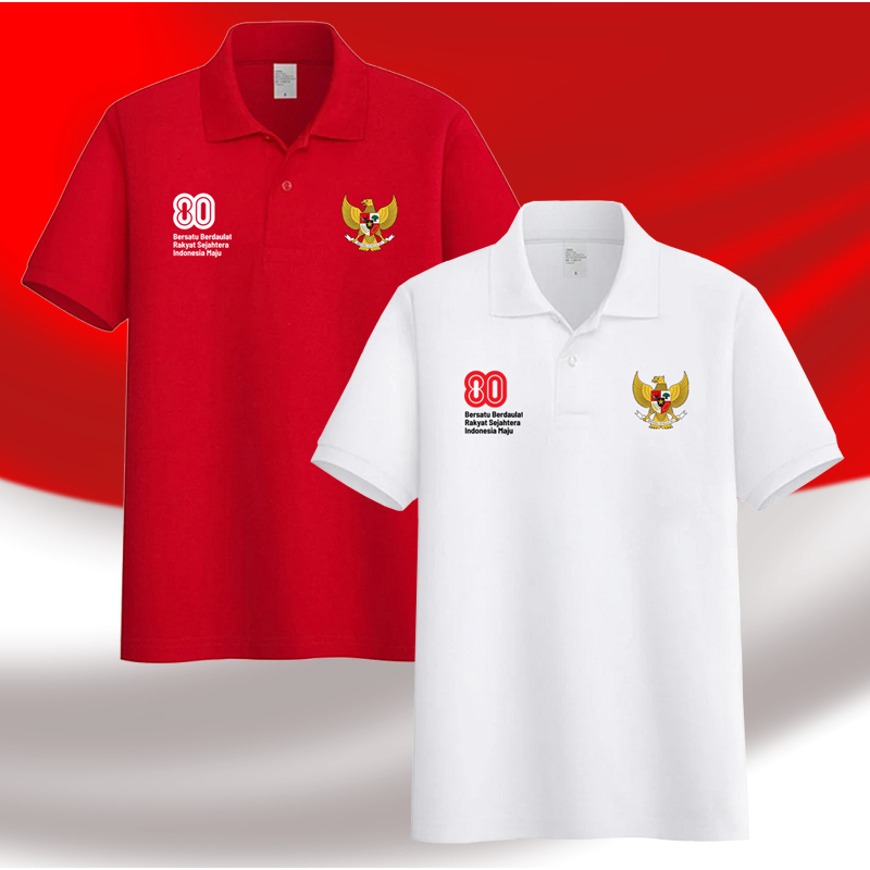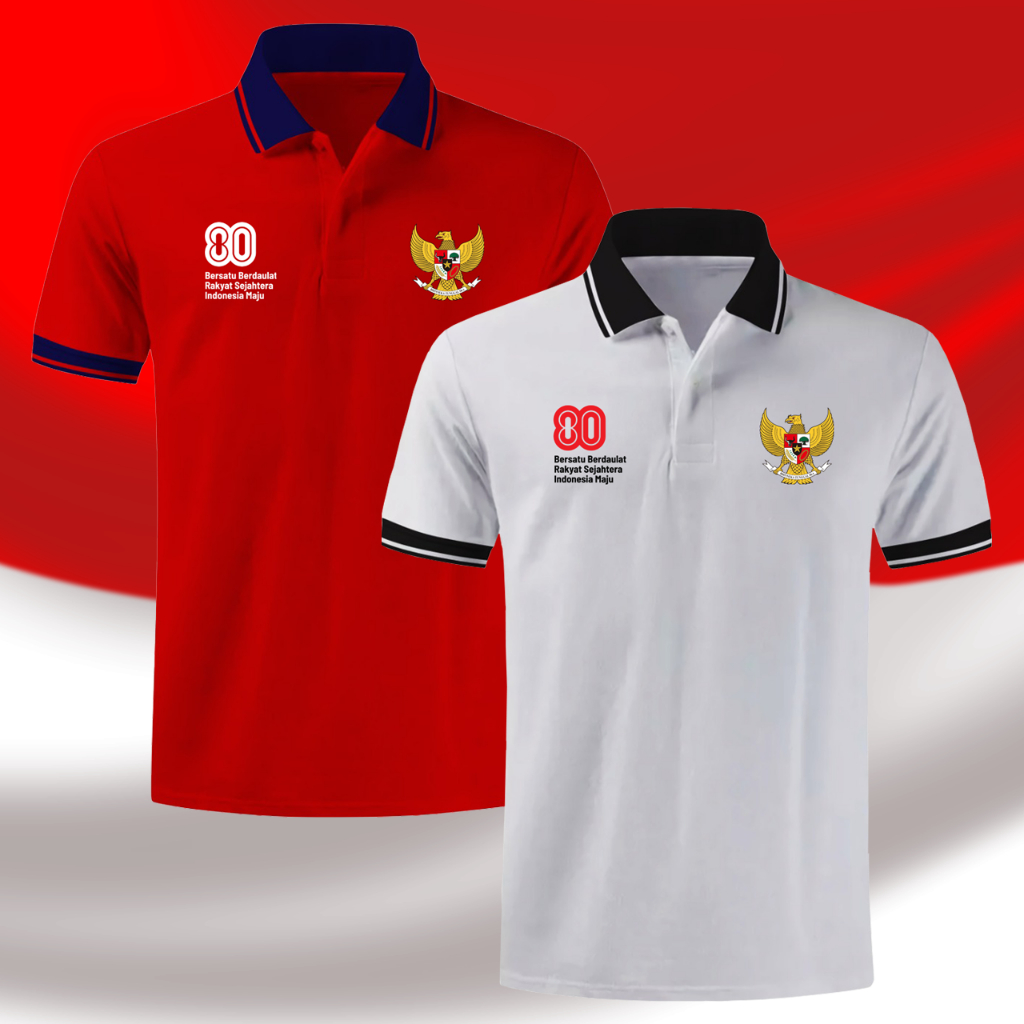 Kaos Polo Pria HUT RI 80 Kaos Kemerdekaan 17 Agustus Merah Putih Bahan ORIGINAL QUALITY PREMIUM