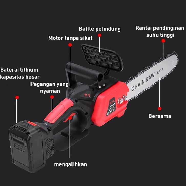 Gergaji 12 Inci Gergaji Mesin Listrik Gergaji Brushless Mesin Cordless Baterai Gergaji Kayu Chainsaw