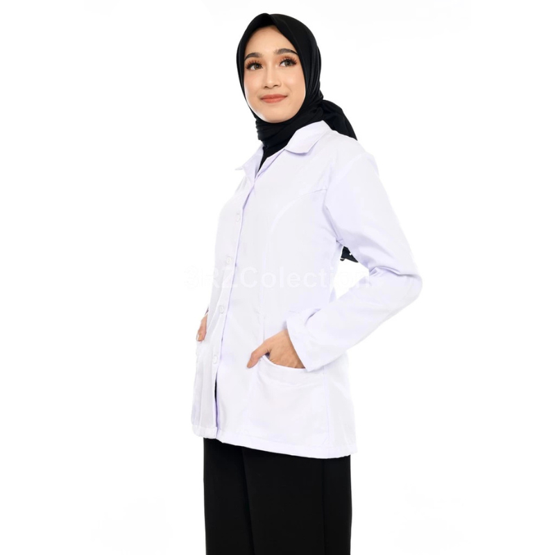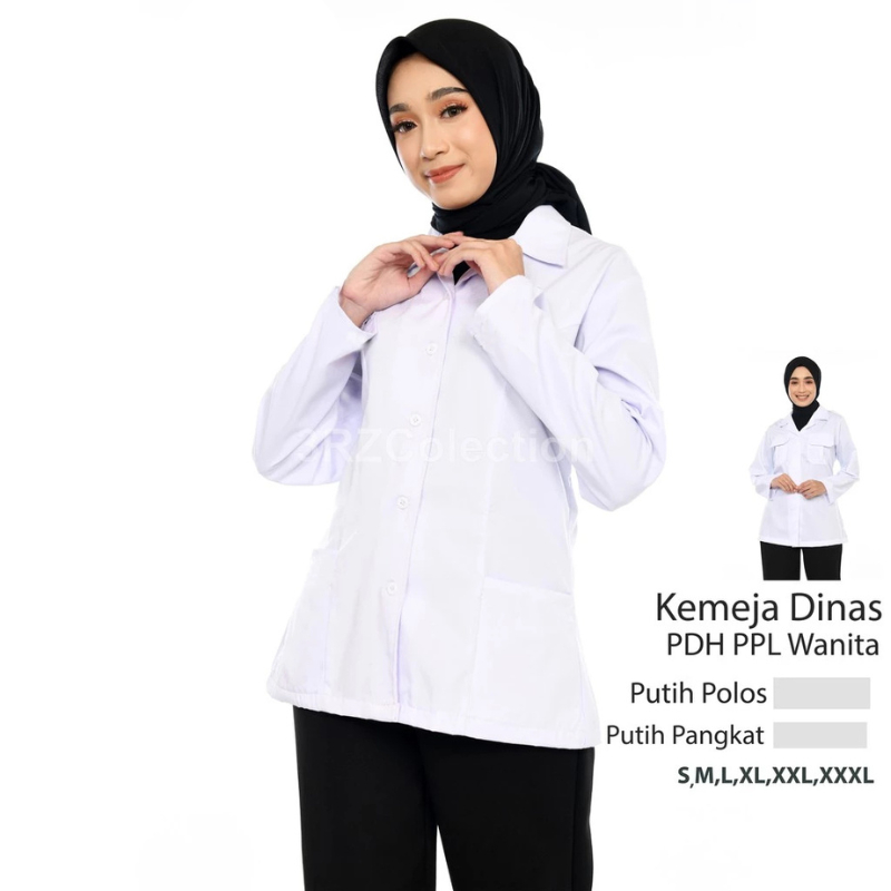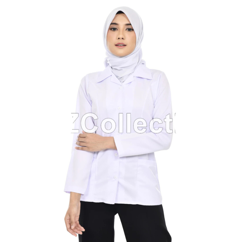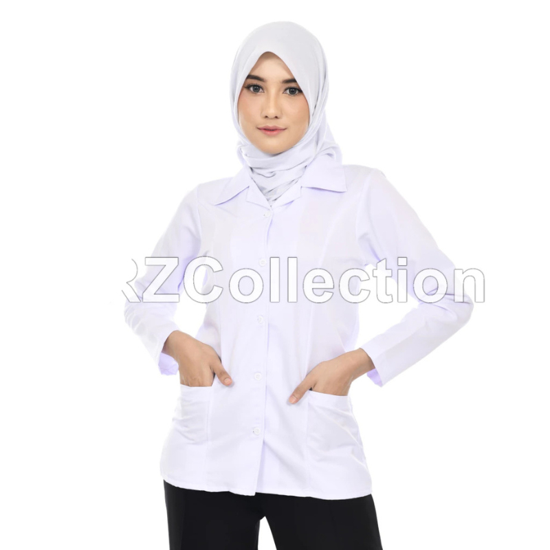 Seragam baju Kemeja Putih Wanita Dinas Dharmawanita Kerja PNS, Guru, Perawat Lengan Panjang Kerah Putih Saku Bawah