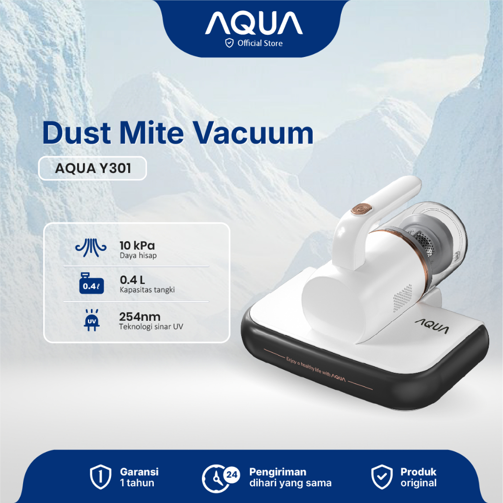 AQUA Y301 10Kpa UV Anti Dust Mite Vacuum Cleaner Kasur Sofa Penyedot Debu UV Anti Tungau Dengan Gelas Debu 0.4L