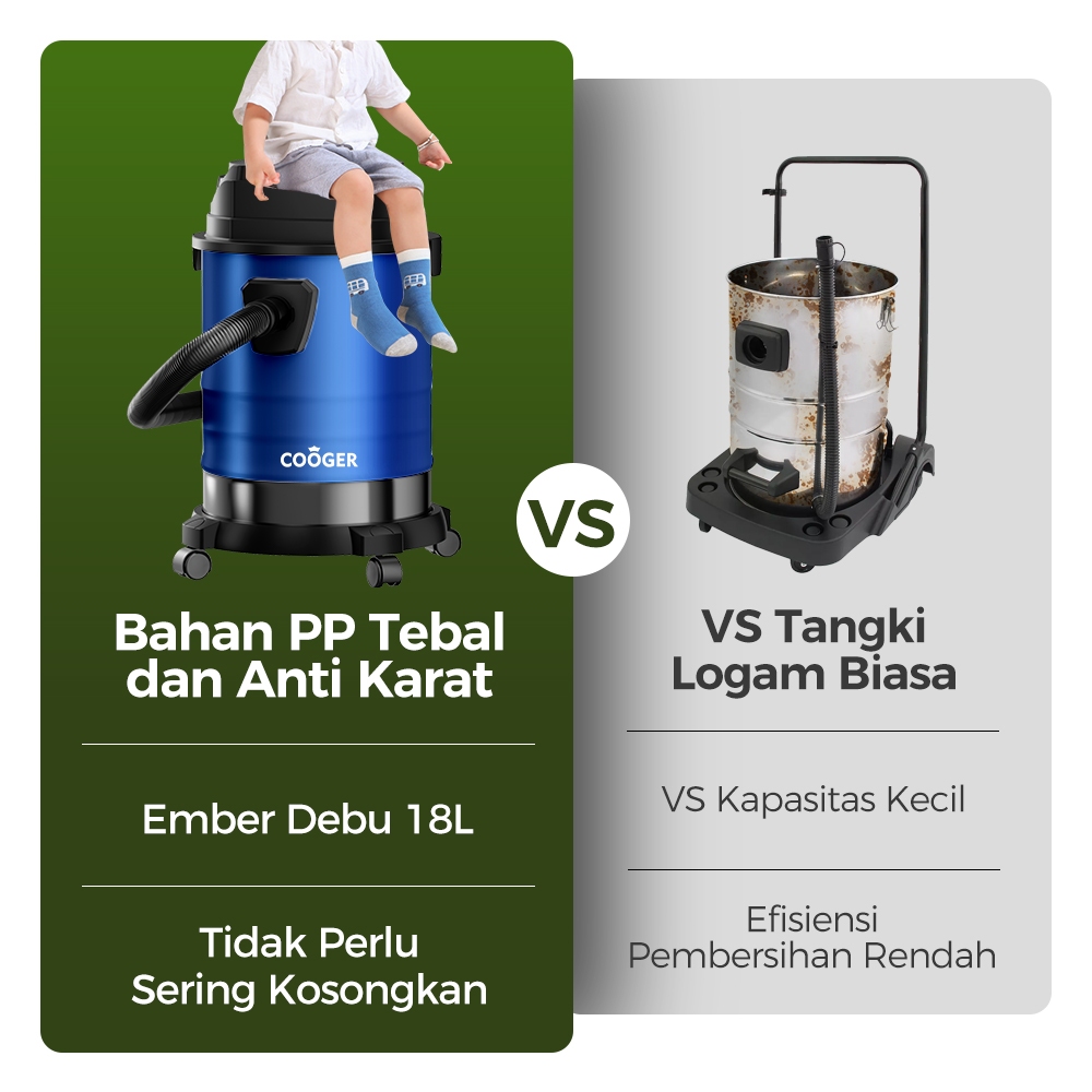 COOGER Vacuum Wet And Dry Pro Mini Dengan Desain Kompak Kapasitas 15L Berbahan Metal Anti Karat Vacuum Cleaner 14IN1 Dil