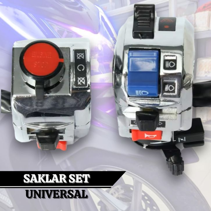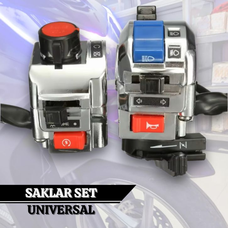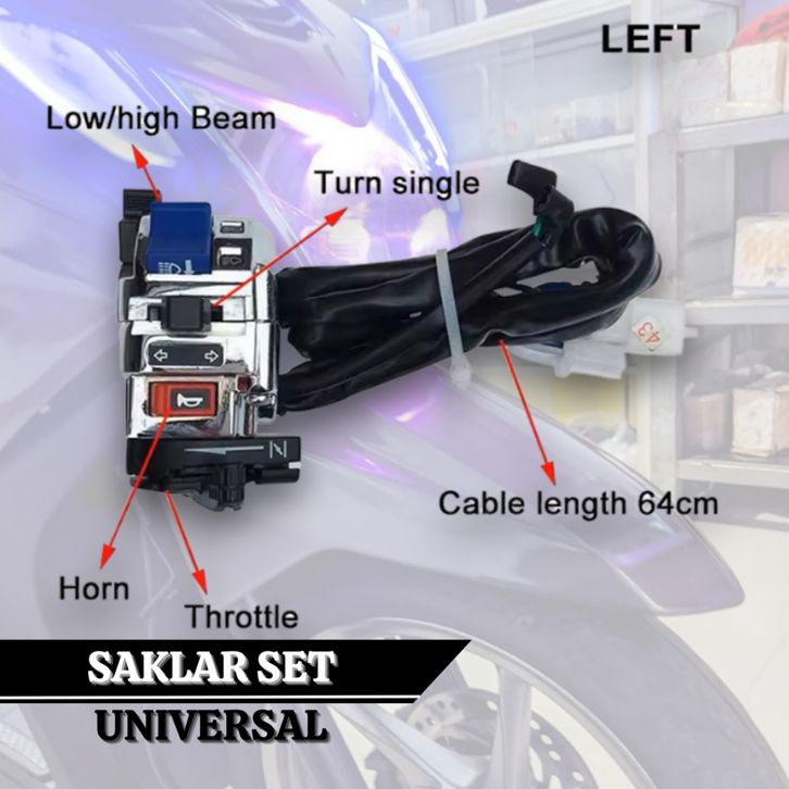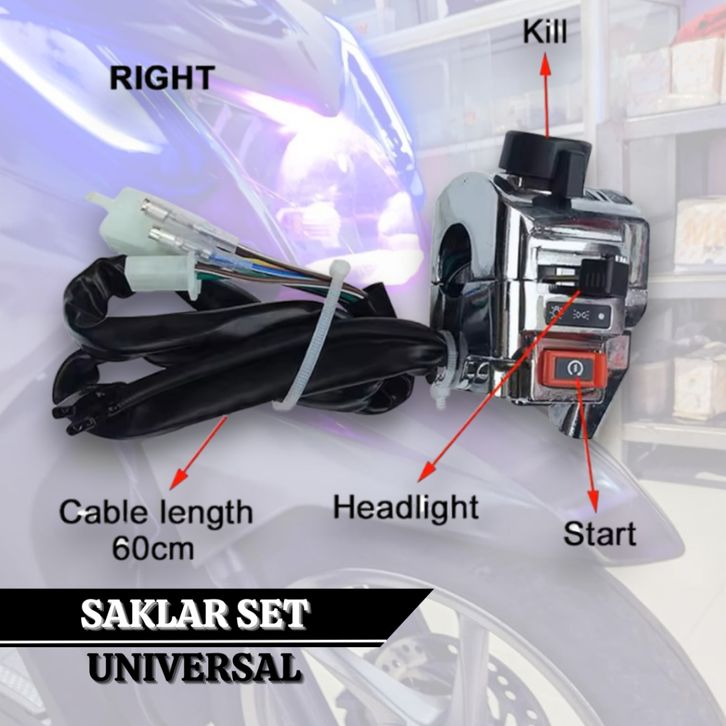 Saklar Set Universal Saklar Chrome Mio 22 mm Lampu Utama Starter Klakson Stop Engine Dim Sen Hazard Kabel 60 cm Waterpr
