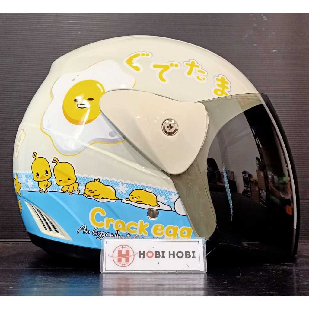 HELM HALF FACE EVOLUTION MOTIF CRACK EGG SERI #3 MIRIP GM EVO MURAH HELM D3W4SA MURAH SNI