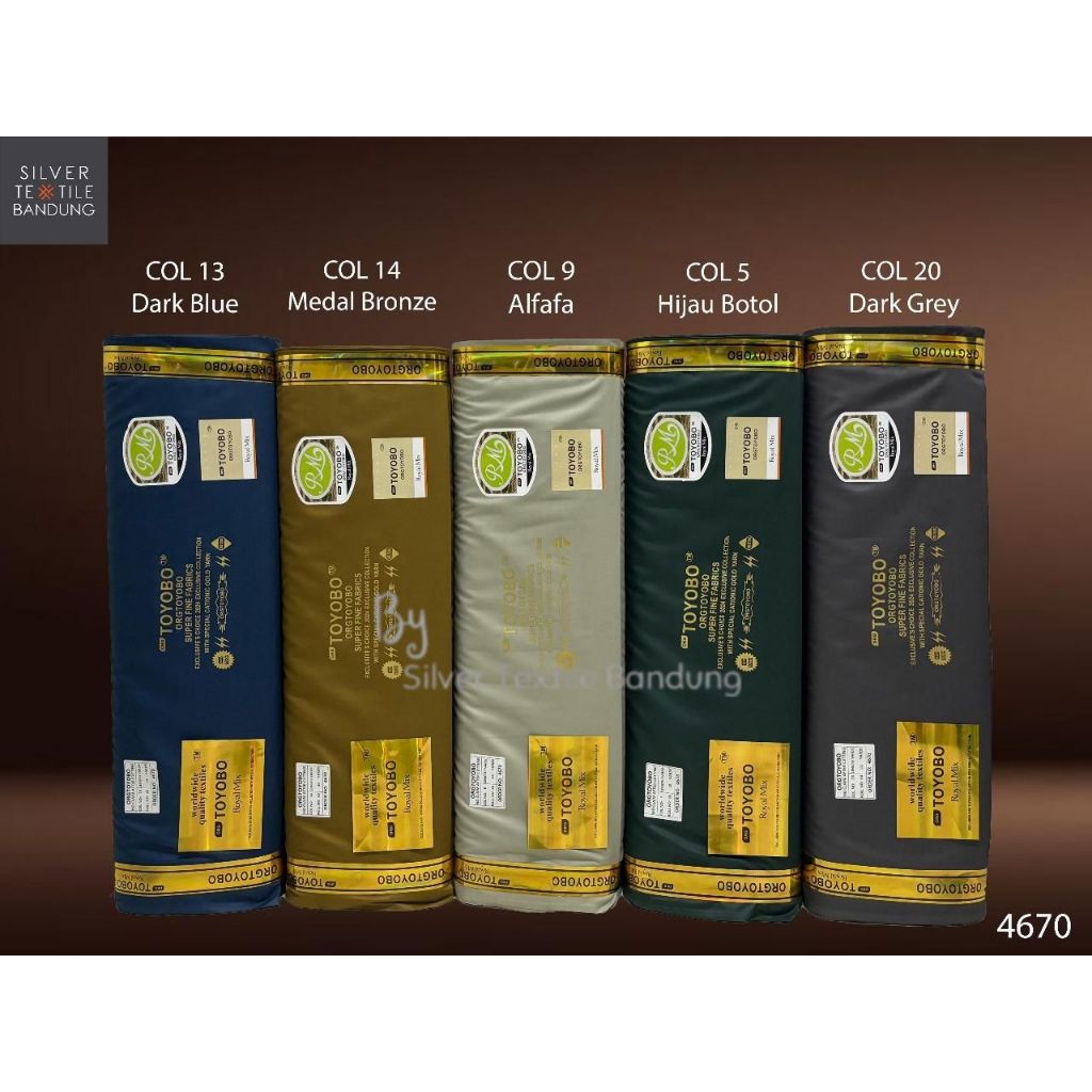 1-White, 2-Navy, 3-Black, 4-Purple Potion, 5-Hijau Botol, 6-Silver Cloud, 7-Sllver, 8-Cognac, 9-Alfafa, 10-Wood Thrush, 11-Dutch Canal, 12-Picante, 13-Dark Blue, 14-Medal Bronze, 15-Hijau Wardah, 16-Charcoal, 17-Nori Green, 18-Adobe Rose, 19-Smoke Blue, 20-Dark Grey, 22/7, 14 A, 01- col 5 - pale kha, 08- col 23