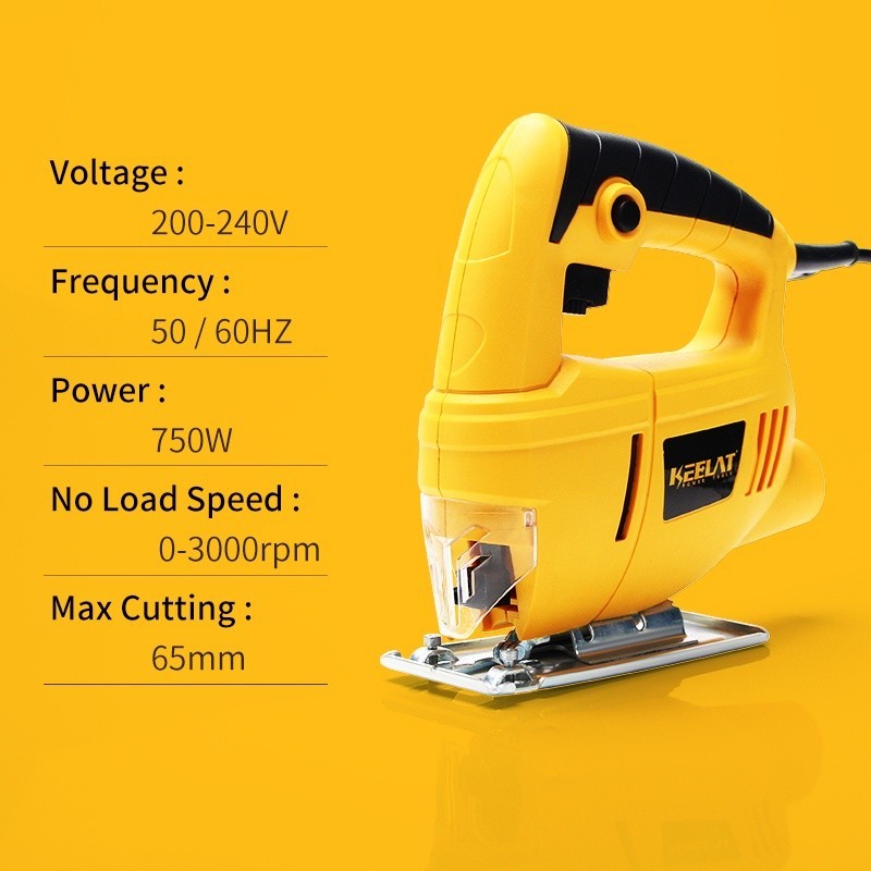 KEELAT 750W Gergaji listrik Mesin Gergaji Jigsaw Power Tools Handheld Jig Saw With 5Pcs Saw Blade Electric Wood Reciproc