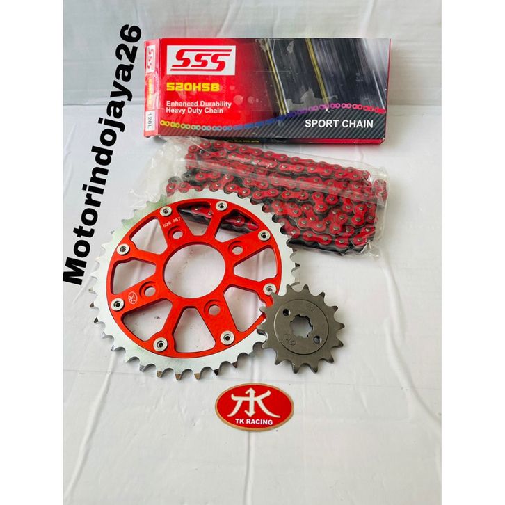 GEAR SET 520 HONDA TIGER TK RACING GEAR ALMUNIUM + BESI SET RANTAI SSS MERAH