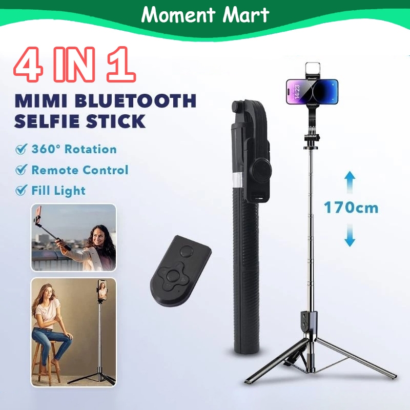 170cm Selfie Stick Tongsis Bluetooth 4IN1 360° Rotation Adjustable tripod remote LED