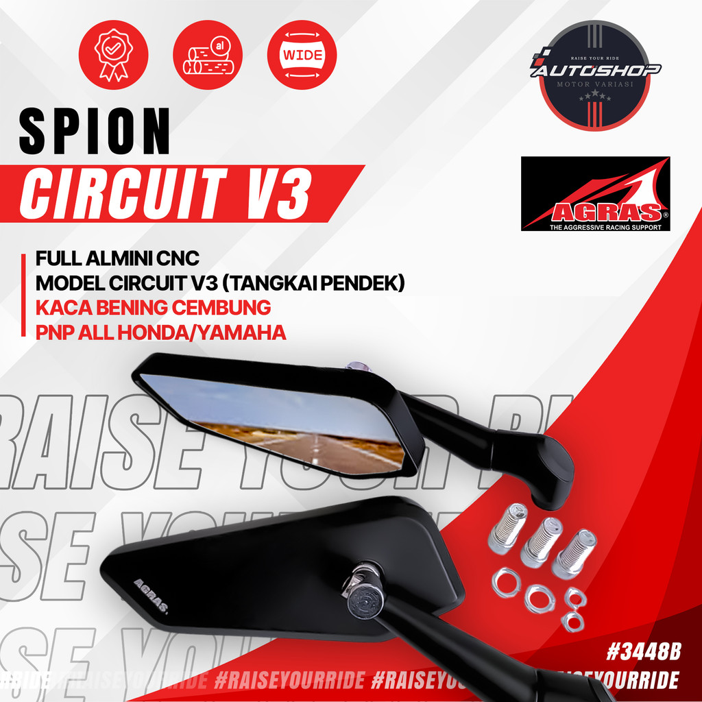 Spion Tomok CIRCUIT V3 Tangkai Pendek FULL CNC Kaca Sepion Mirror VARIO NMAX XMAX ADV Model Full Black Hitam Universal