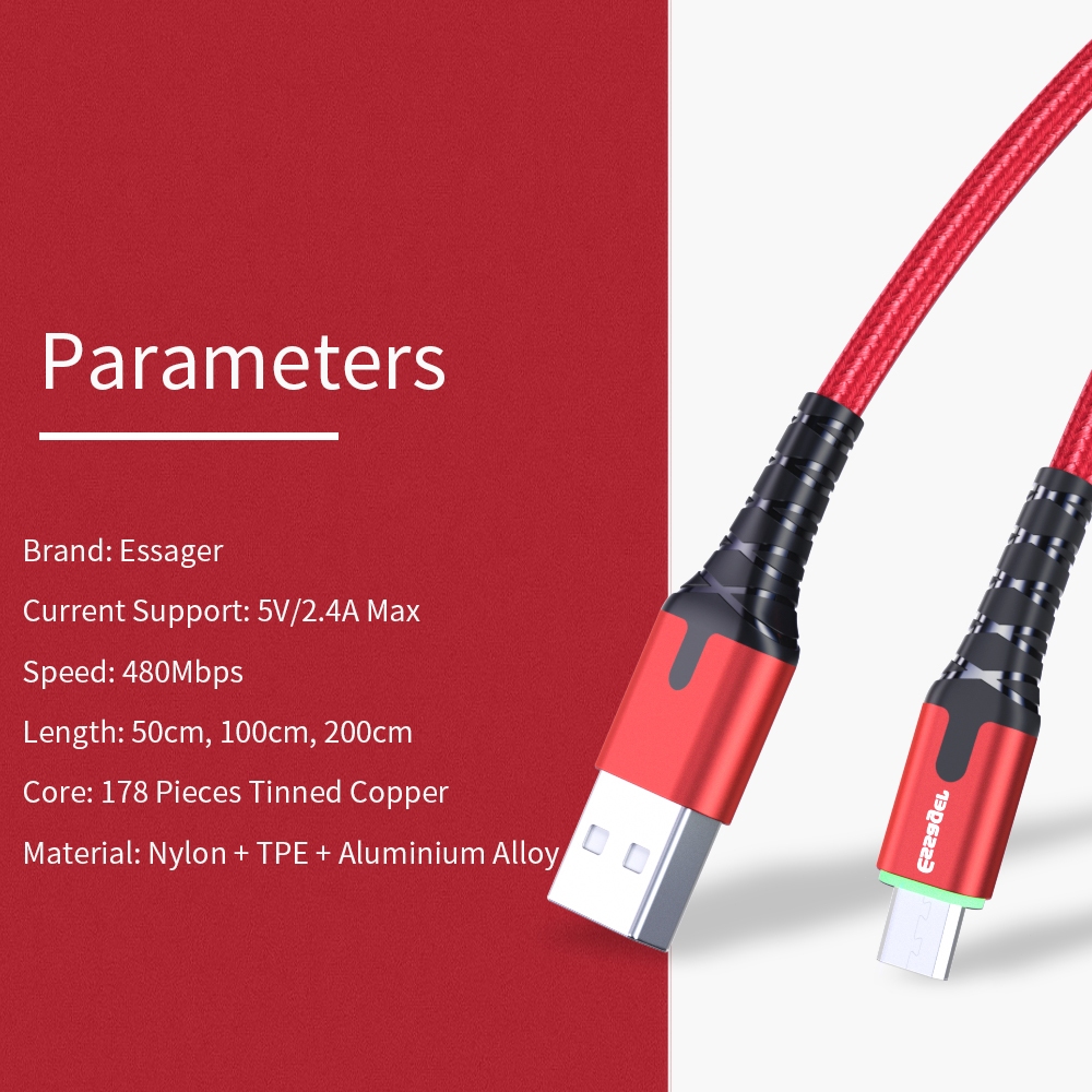 ESSAGER Kabel Usb Micro Fast Charging I Kabel Data Type C Usb Original Universal Android QC Fast Charging 1 Meter Dan 2