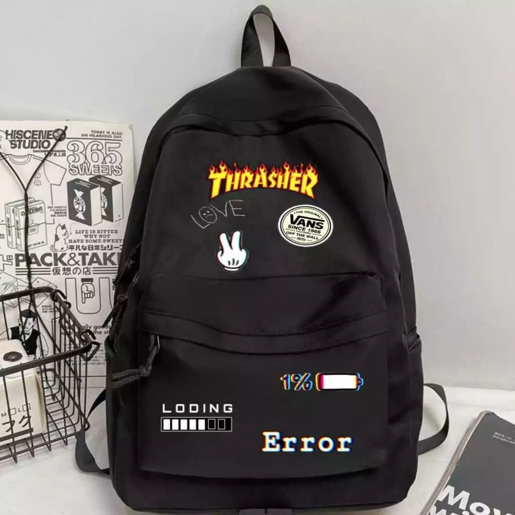 - Tas Distro Pria Cowok Keren Motif Band Metal Kasual Ransel Terkini Fashion Anak Sekolah SD SMP SMA