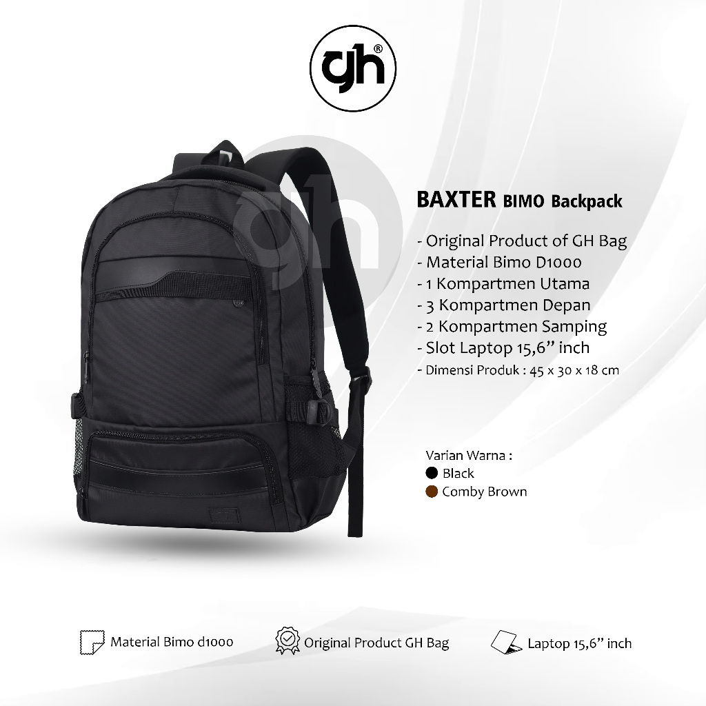 GH-Bag Klub New Arrival - Tas Ransel BAXTER Laptop Backpack Up to 15" Inch - Tas Pria/Wanita Daypack