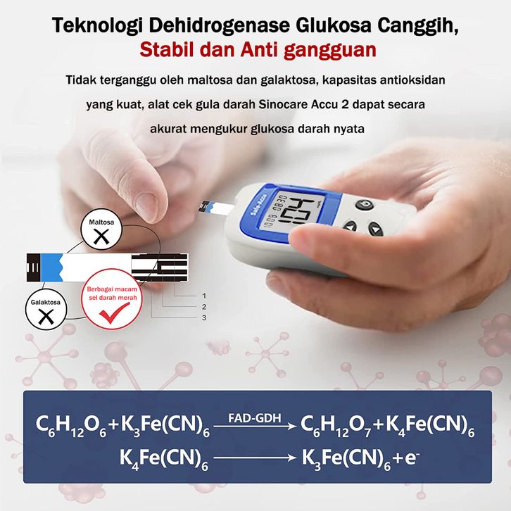 [TERMURAH] Sinocare Alat Tes Gula Darah Safe Accu2 Praktis .t BGM 200 Memori HCT 30-60.