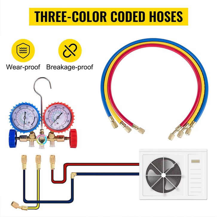 Alat Pengisian Freon Ac Kulkas Ac Rumah Manifold Double Smc Set Multi Premium Freon Hfc 134.Selang