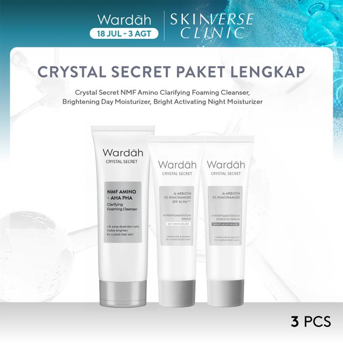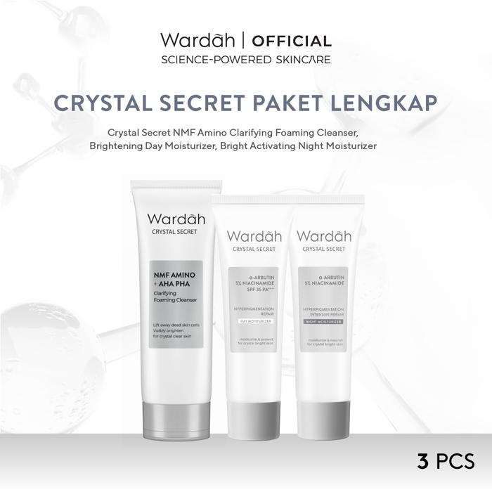 WARDAH Paket Crystal Secret Lengkap - NMF Amino + AHA PHA Clarifying Foaming Cleanser 100 m,