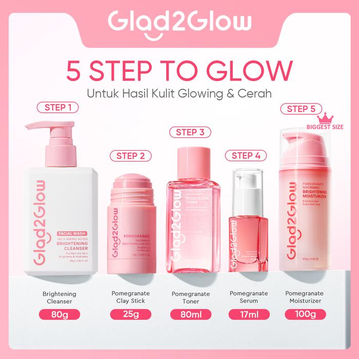 New Glad2Glow Big Size Glowing bundle all in 1 -2/3/4/5 PCS Skincare Paket-Brightening