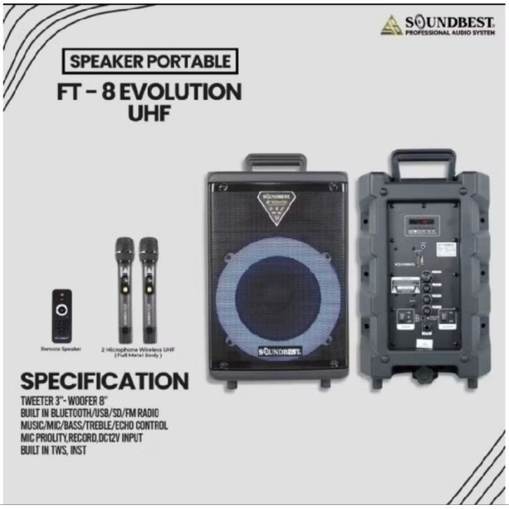 Speaker Aktif Portable Wireless Soundbest FT 8 Evolution Original 8 inch UHF Bluetooth