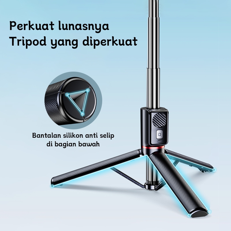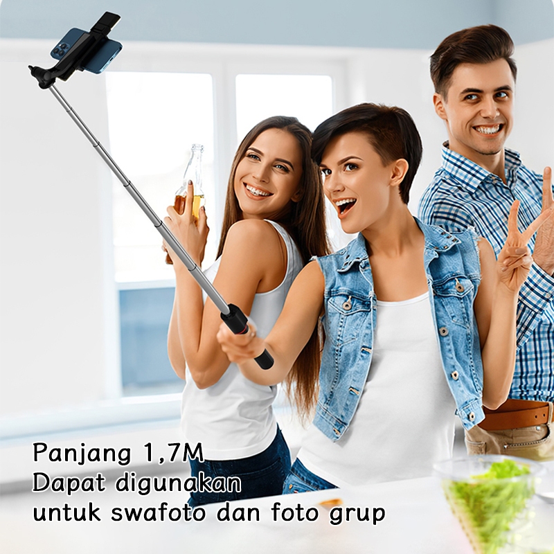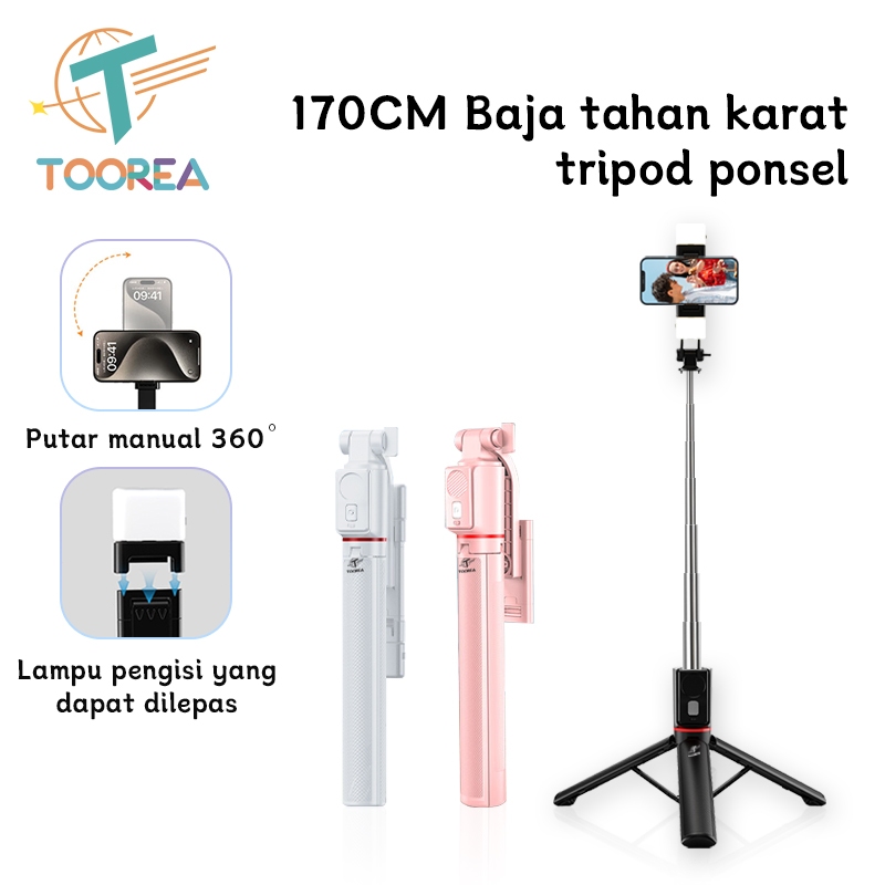 TOOREA UK 170CM Tongsis Tripod Bluetooth Selfie Stick Dengan Remote Control Bluetooth HP Holder Mini Portabel Tongsis Untuk Vlogging Live
