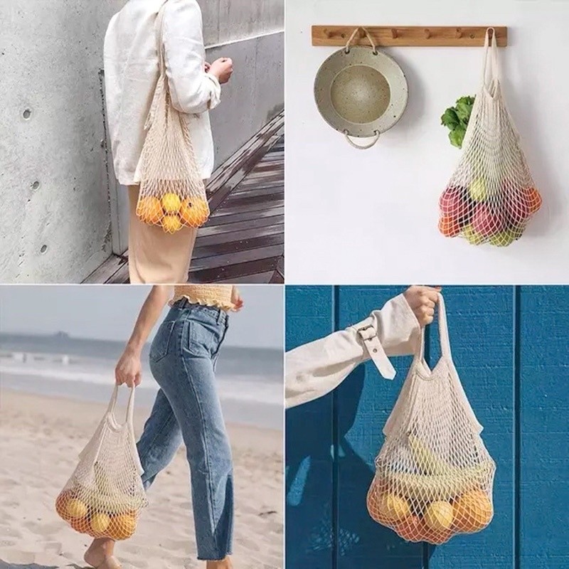 Tas Belanja Jaring Reuseable Net Grocery Bag Katun Cotton Mesh Bag Eco Friendly Kantong Shopping Bag Serba Guna Zero Was