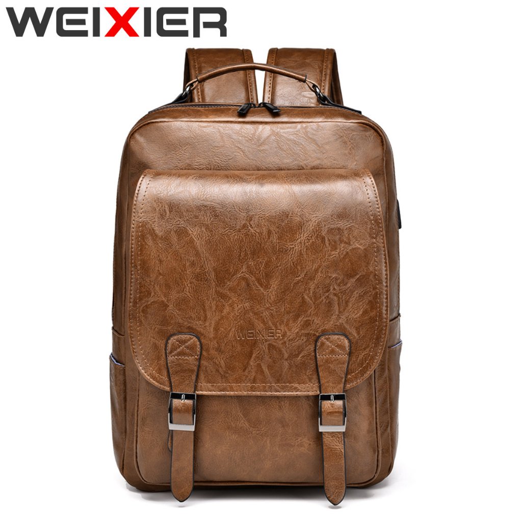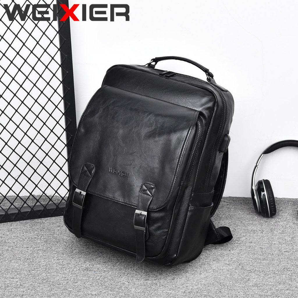 WEIXIER B677 Tas Punggung Pria Kulit Ransel Laptop USB Port WX-OS