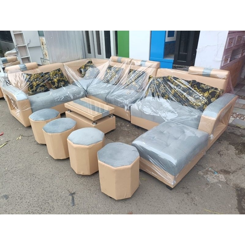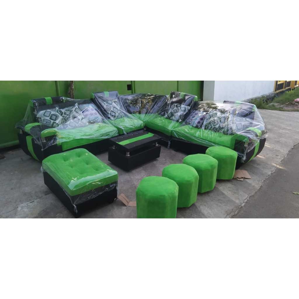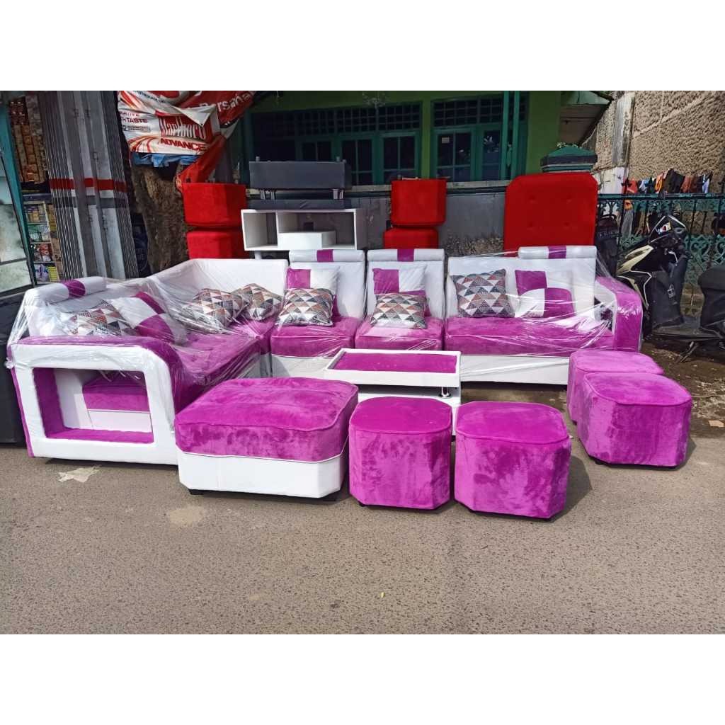 SOFA RUANG TAMU MURAH / SOFA BERANAK BAHAN BLUDRU & KALEP (Chat Admin Untuk Daerah Pengiriman)