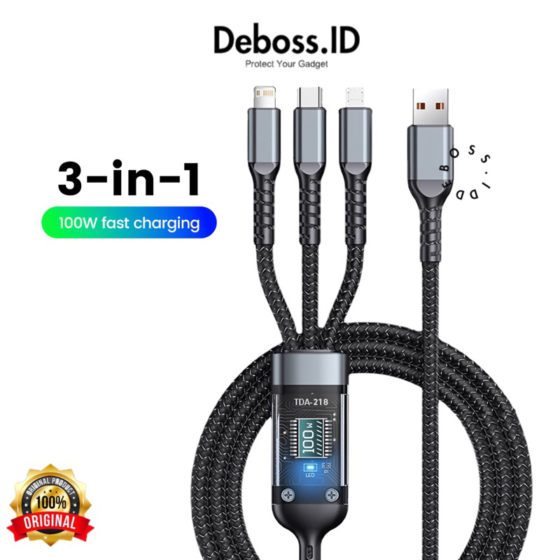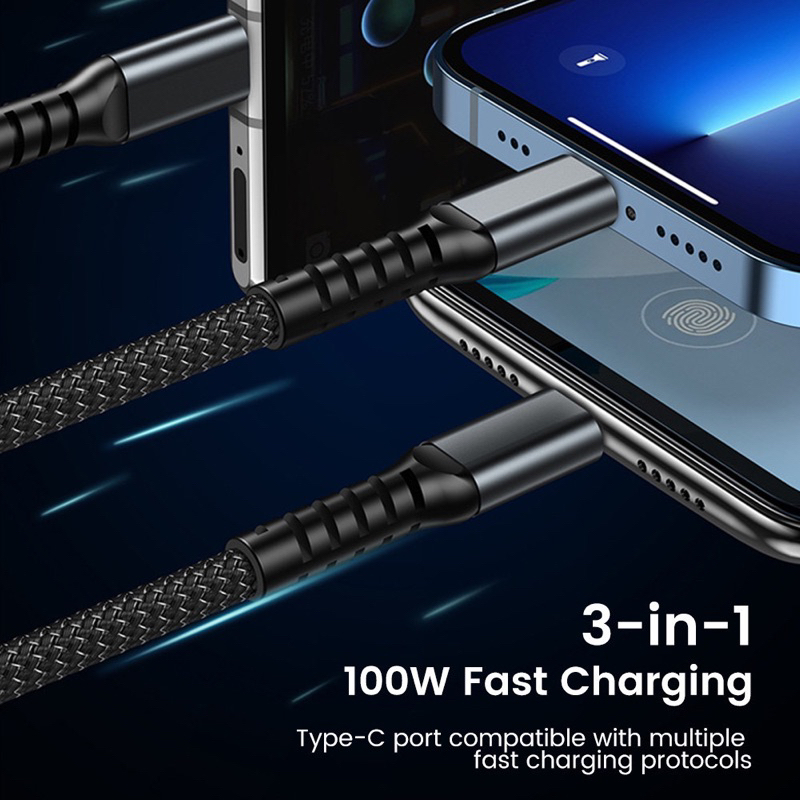 [PKING BOX] Kabel Data ip 3 in 1 Fast Charging 100W USB to Lightning Micro Type C