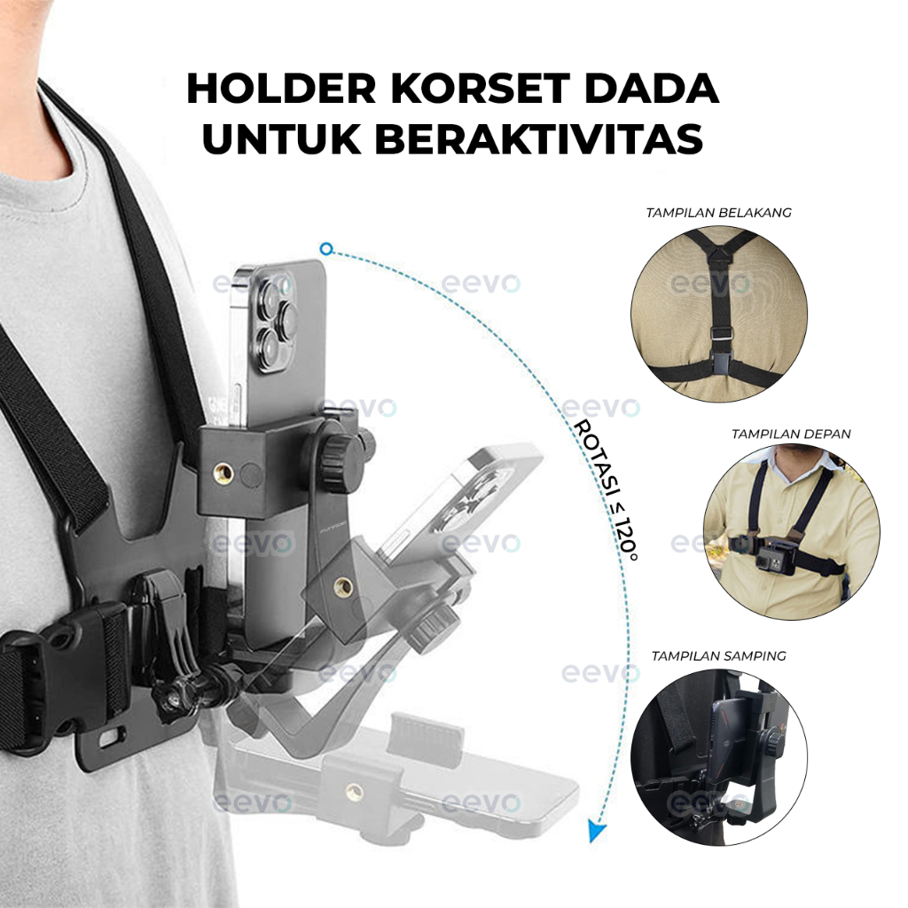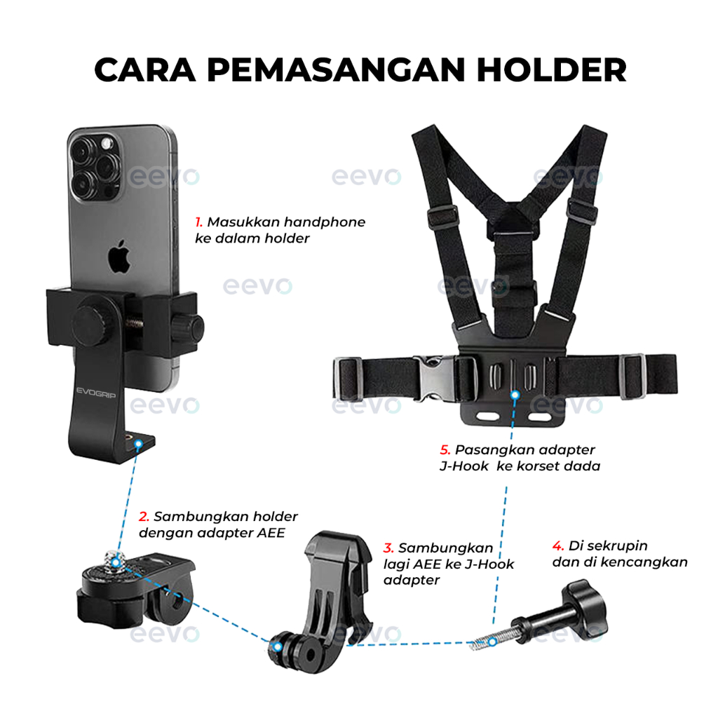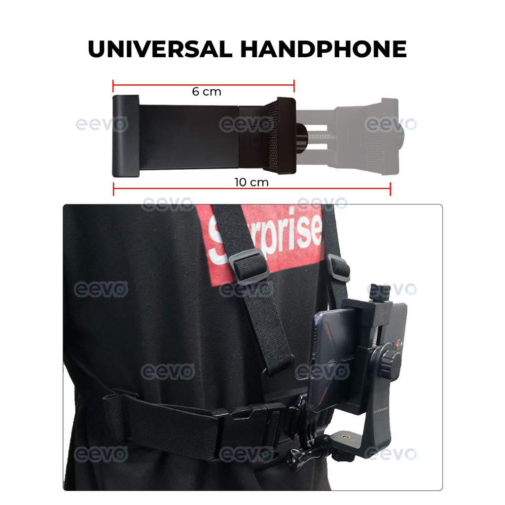 Chest Strap Hp evogrip AK10 Holder tali dada Handphone GO PRO HERO Action Cam POV Clip Clamp di badan tubuh Body Mount Vlog
