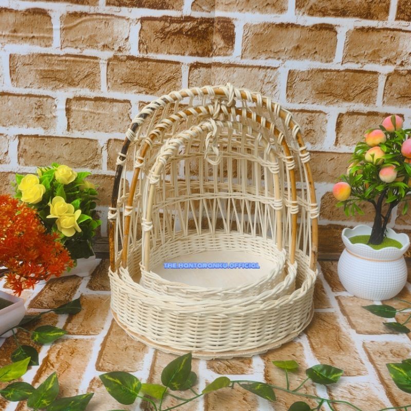keranjang bulat rotan ayunan keranjang sangkar alusan 1 set isi 3 murah pakai rotan kualitas super/halus