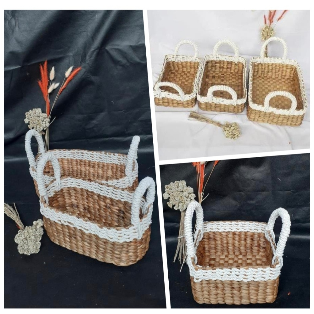 Tray keranjang Per.panjang Oval Kotak list Putih Enceng Gondok seagrass easthetic anyaman jogja