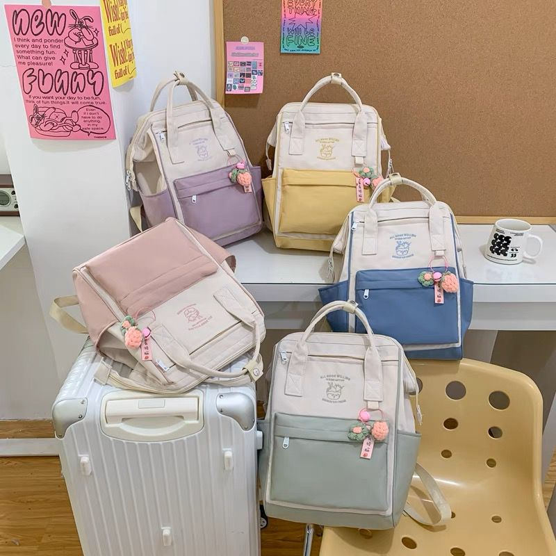Tas Korea Sekolah AnaK Remaja Unisex Ransel Wanita Laptop Korean Style Backpack Stylish FREE Gantungan