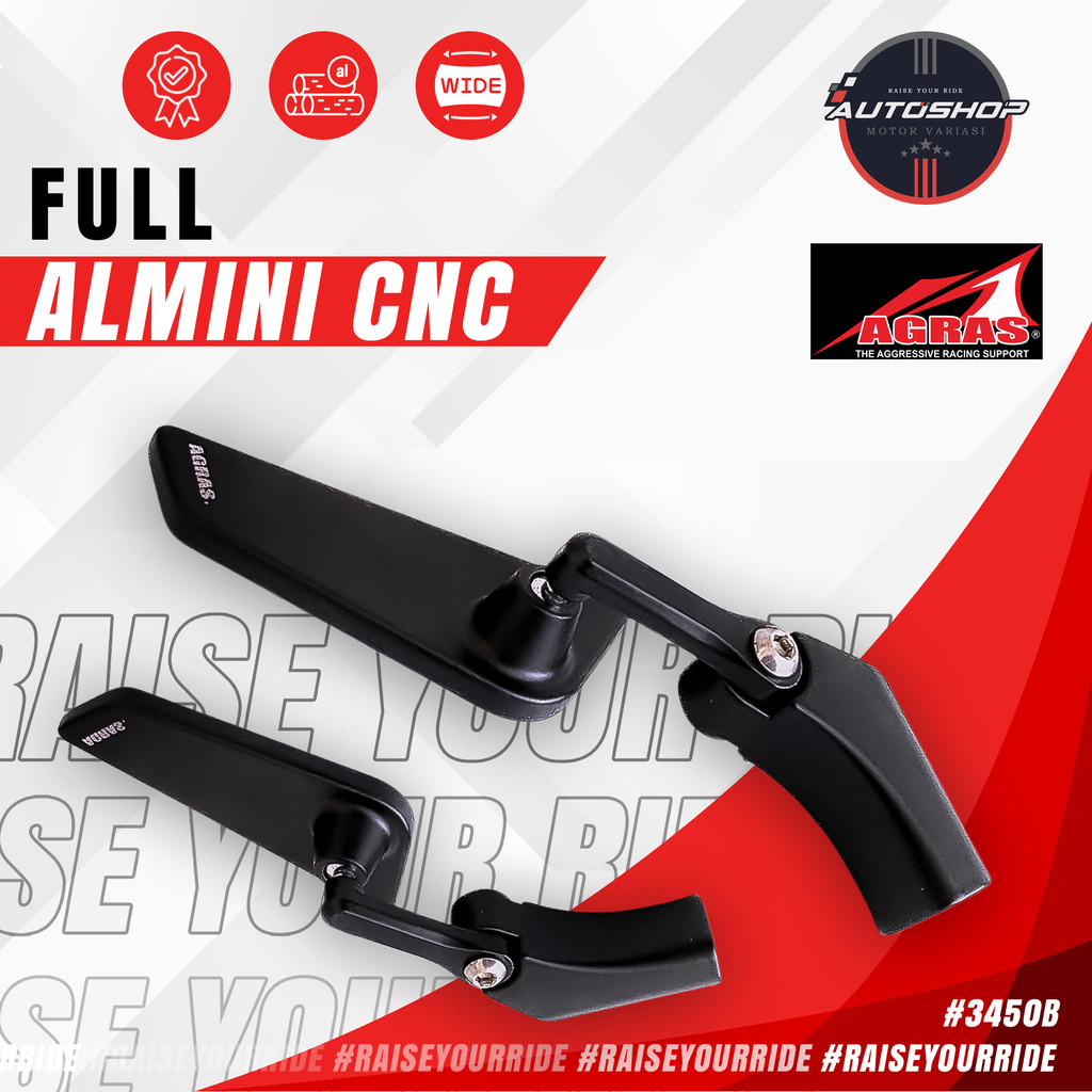 Spion MINI SPORTY Tangkai Pendek FULL CNC Kaca Sepion Mirror VARIO NMAX XMAX ADV Model Full Black Hitam Universal Moto