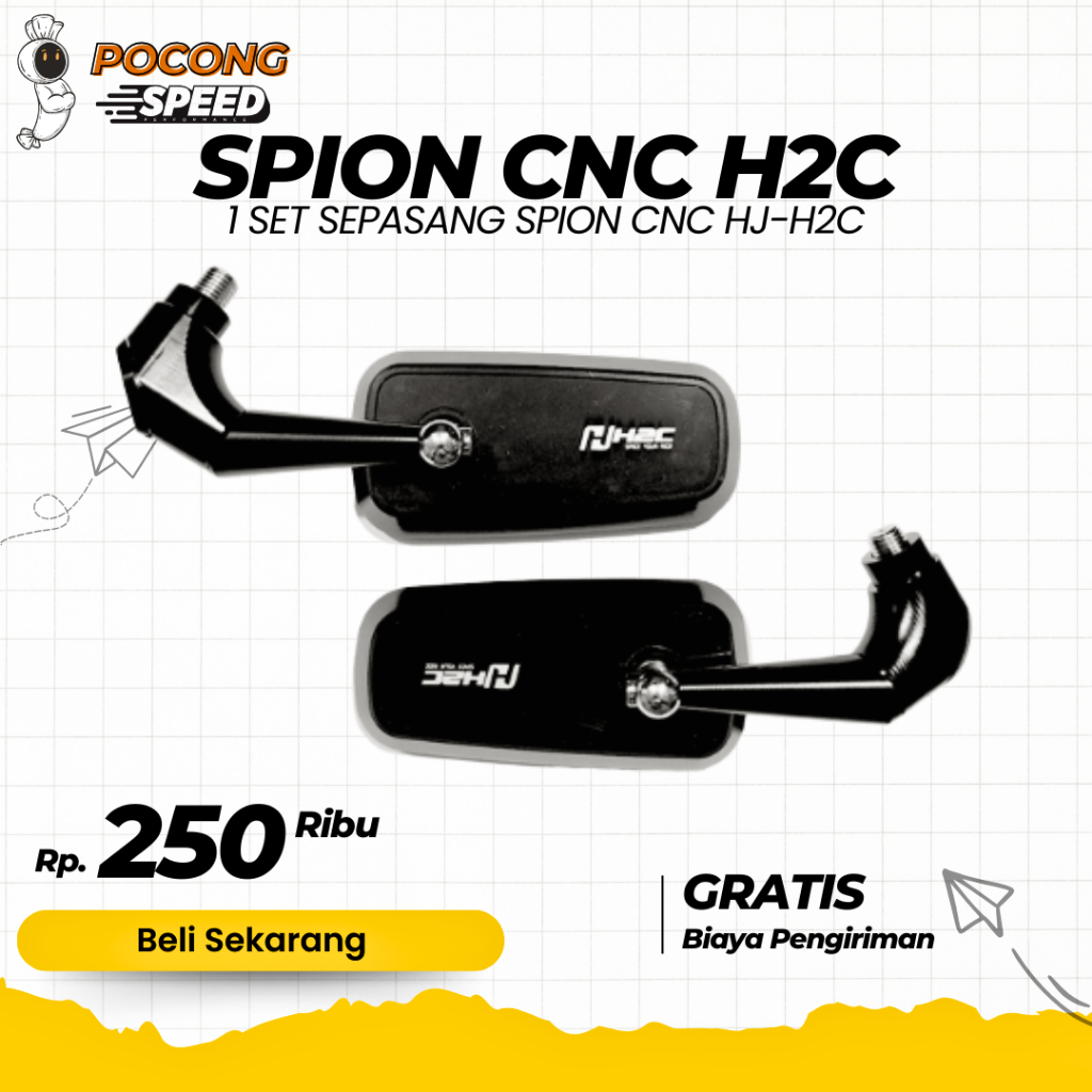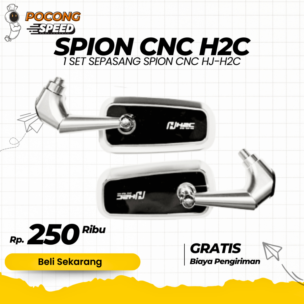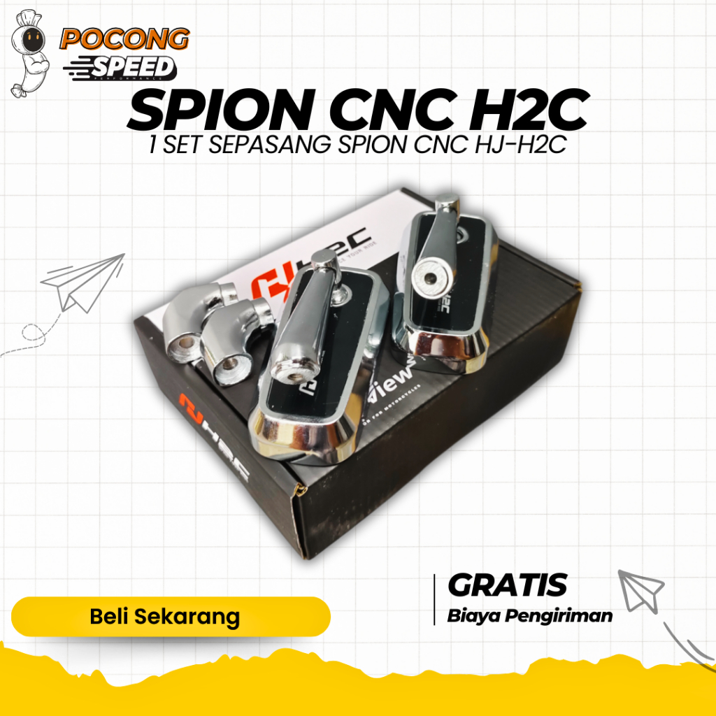 SPION PERSEGI CIRCUIT MODEL H2C CNC 1 SET SEPASANG KIRI KANAN SPION H2C CNC KACA BENING UNIVERSAL
