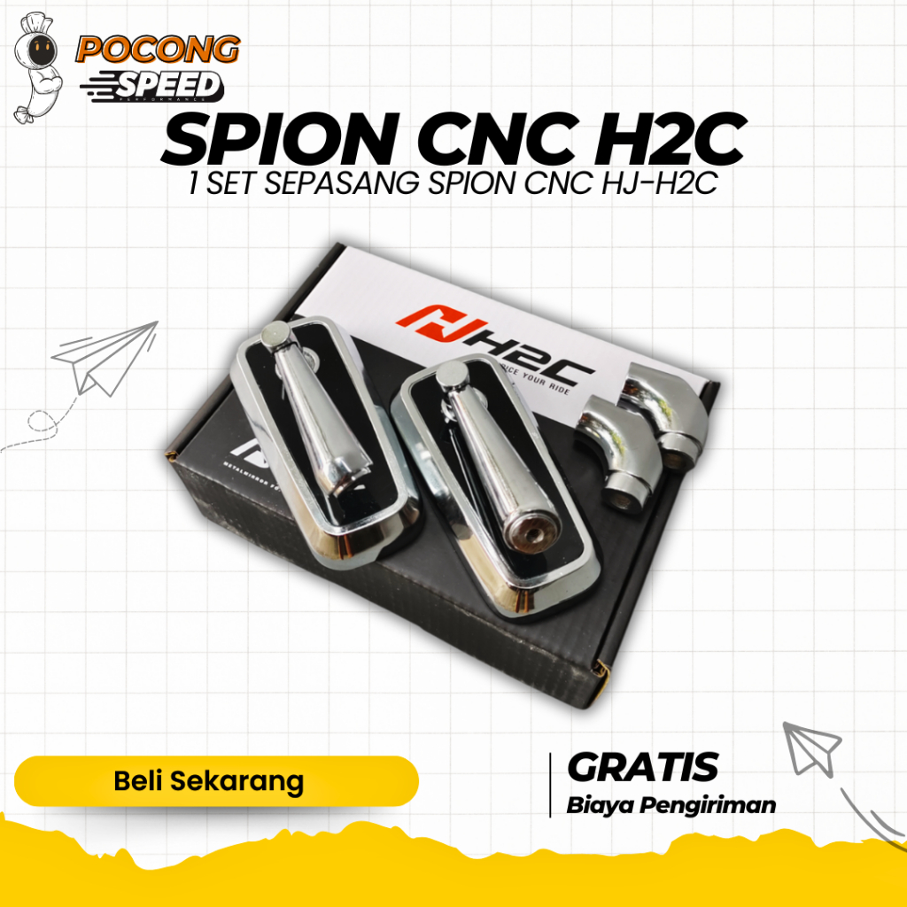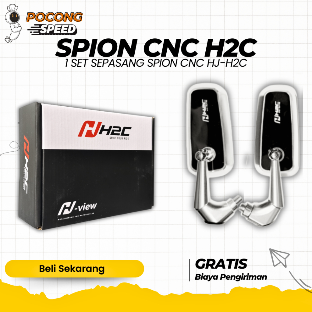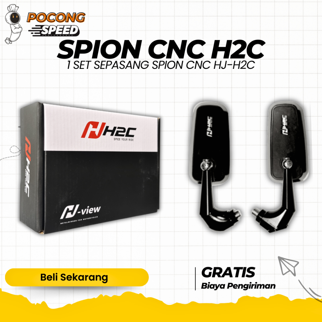 SPION PERSEGI CIRCUIT MODEL H2C CNC 1 SET SEPASANG KIRI KANAN SPION H2C CNC KACA BENING UNIVERSAL