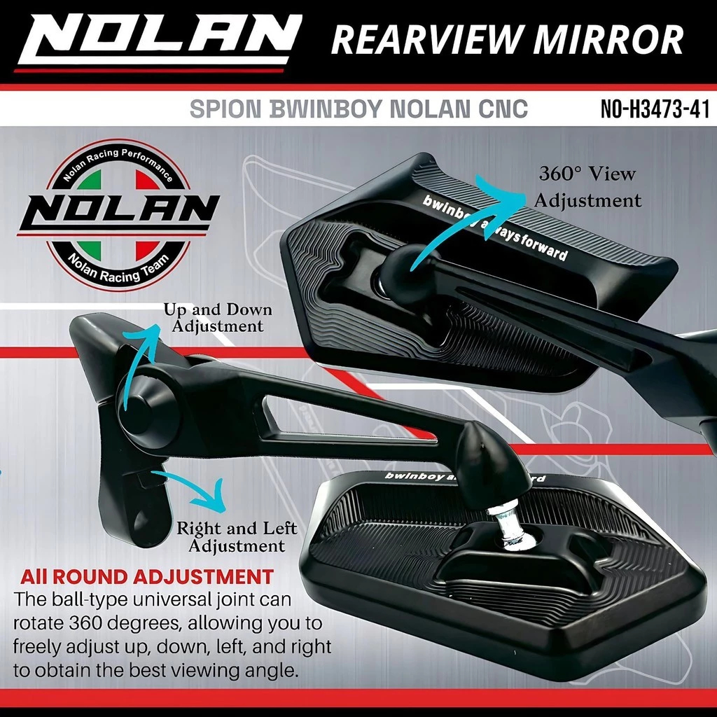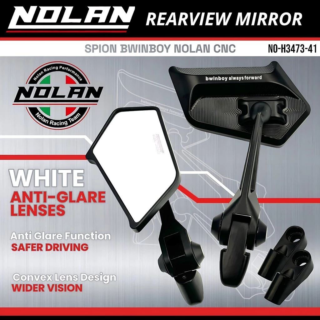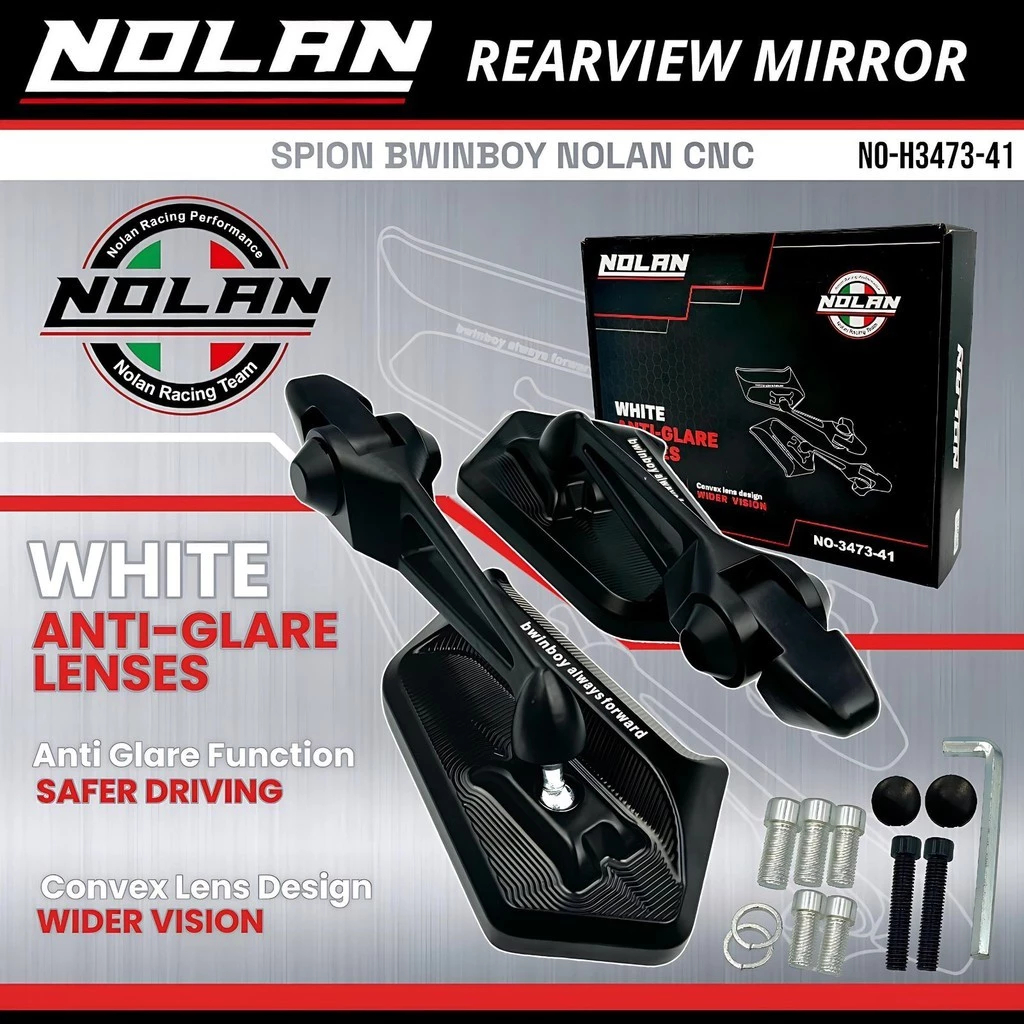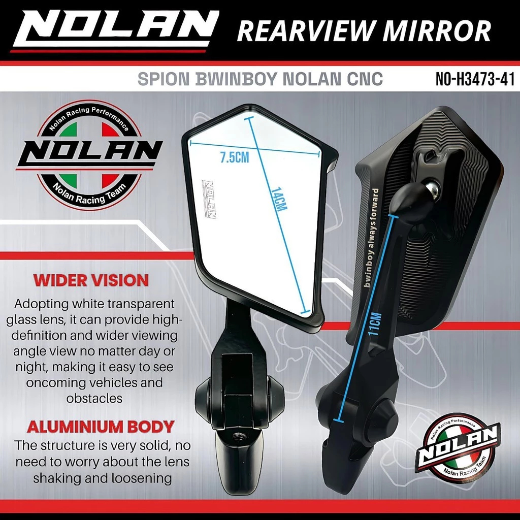 Spion motor spion kaca putih NOLAN Model BWINBOY Bahan Aluminium Full CNC Universal
