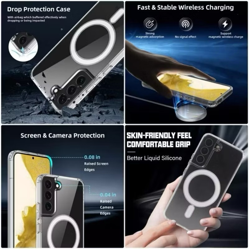 CASE MAGSAFE CLEAR SAMSUNG S10 PLUS/S24 FE/A06 5G/A56/A36/A26/A16 4G/5G/NOTE 10 PLUS/9/A05/A54/A35/A06/A55/A15/S25 EDGE