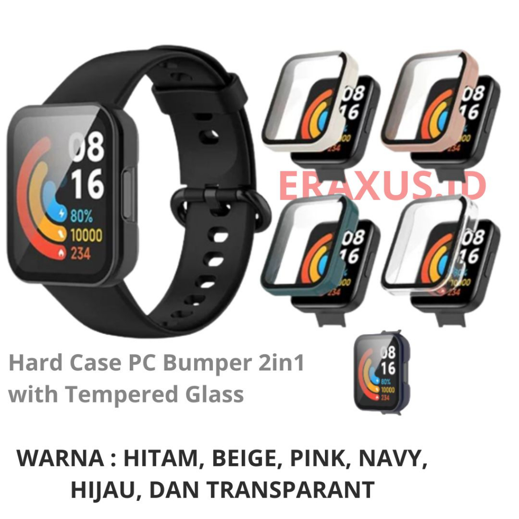 [Eraxus] Bumper Hard Case 2in1 Redmi Watch 2 Lite Tempered Glass Screen Protector Cover for Xiaomi Mi Watch Lite 1 / Mi Watch 2 Lite