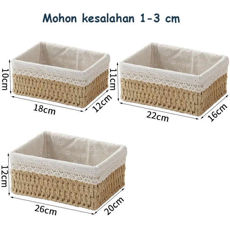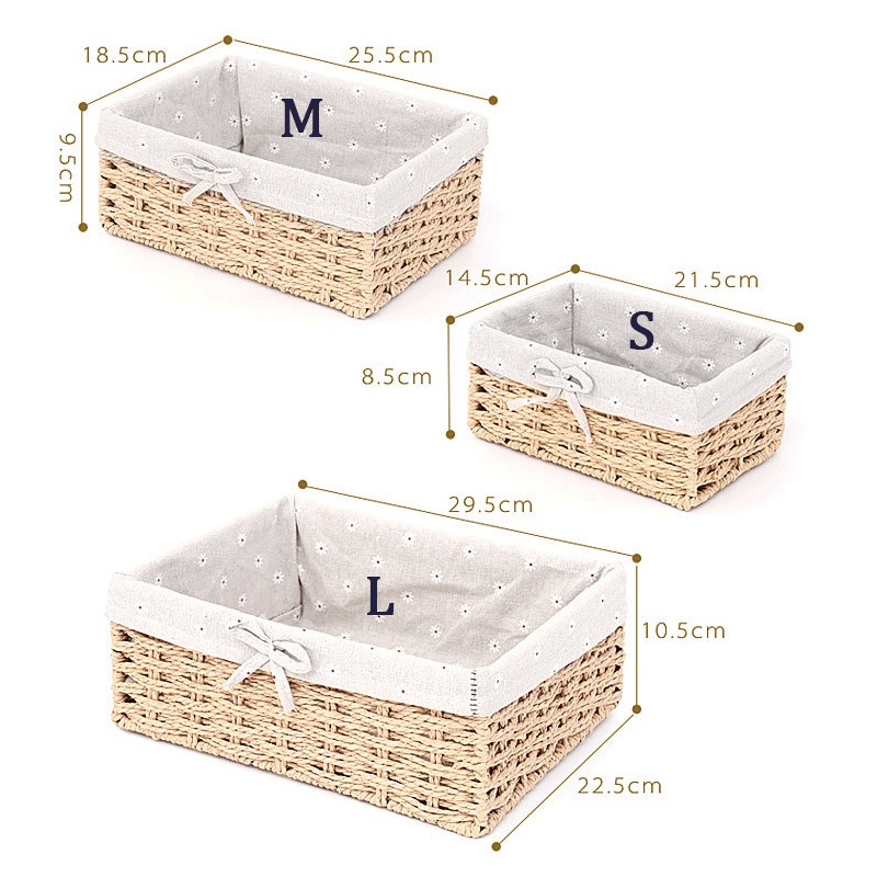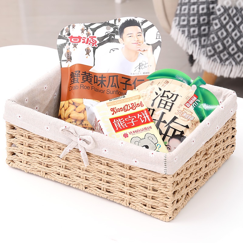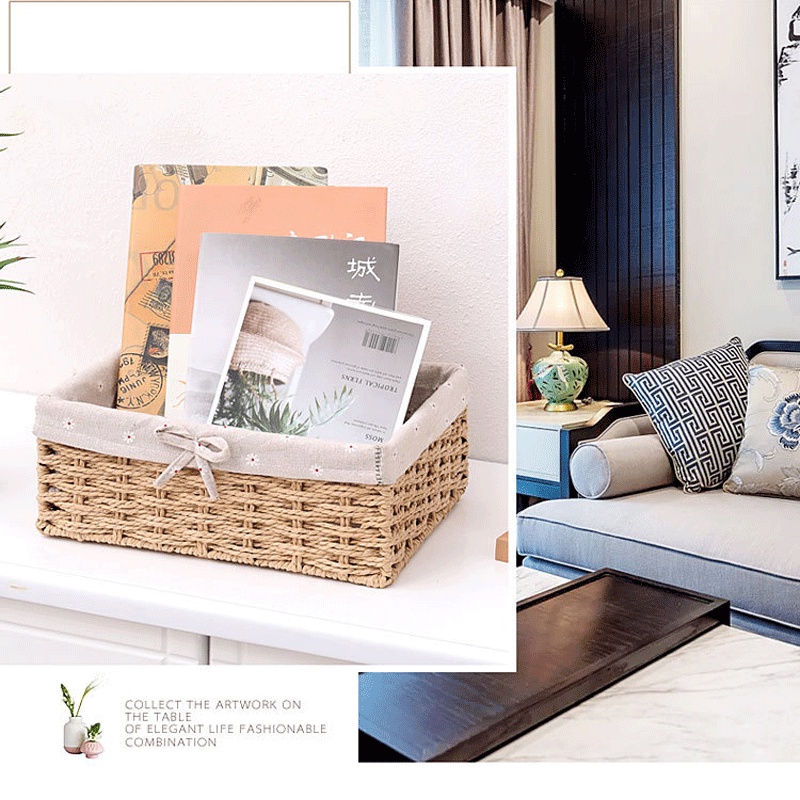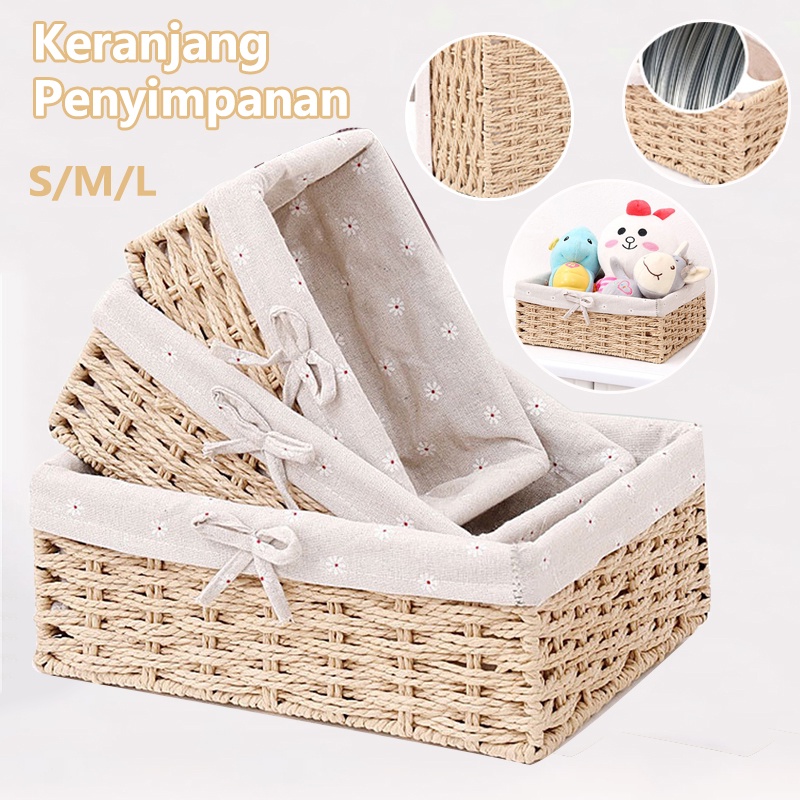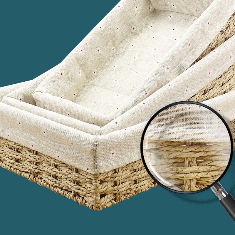 Keranjang Rotan Persegi Panjang Keranjang Penyimpanan Tray Enceng Gondok List Kotak Serbaguna Rotan Storage Basket