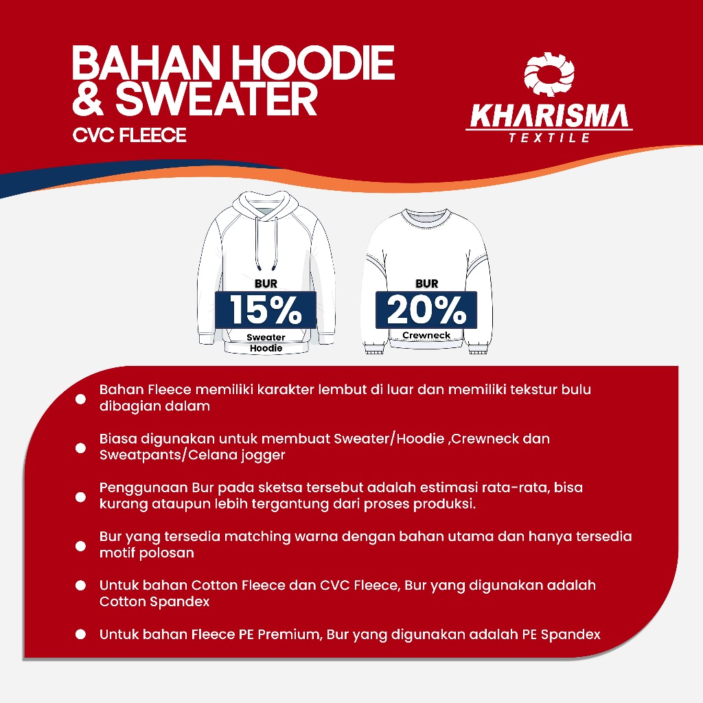 Bahan Jaket Sweater Mix Cotton CVC Fleece Premium Warna Merah Maroon Kharisma Textile