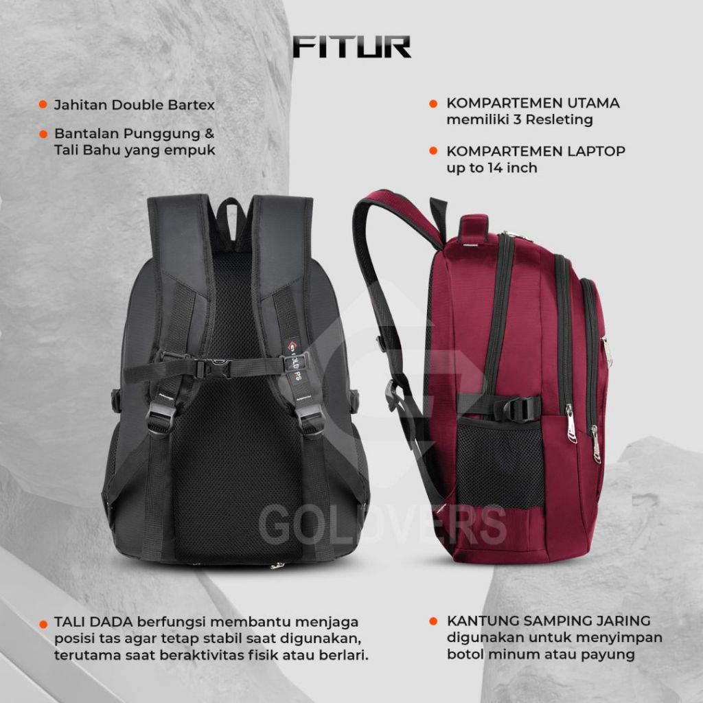GOLDVERS - GRAYBONE Tas Ransel Laptop Sekolah Terbaru Fashion Pria Distro Official Brand ORIGINAL