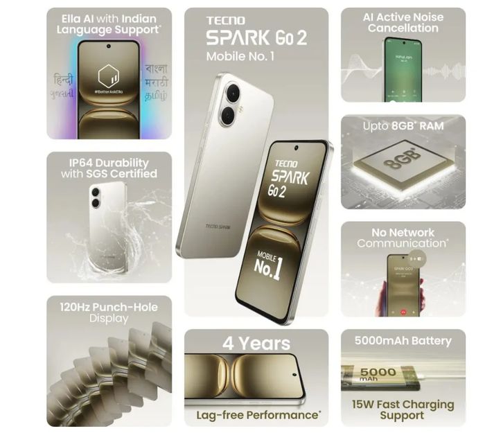 Tecno Spark Go 2 3GB+3GB/64GB, IP64, 6.67" HD+, 120Hz Smooth Display, 5000mAh, 18W Charging - Garansi resmi 1 Tahun