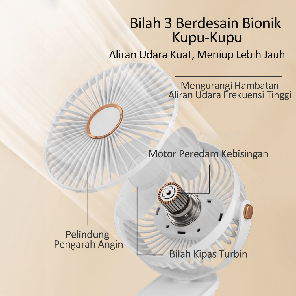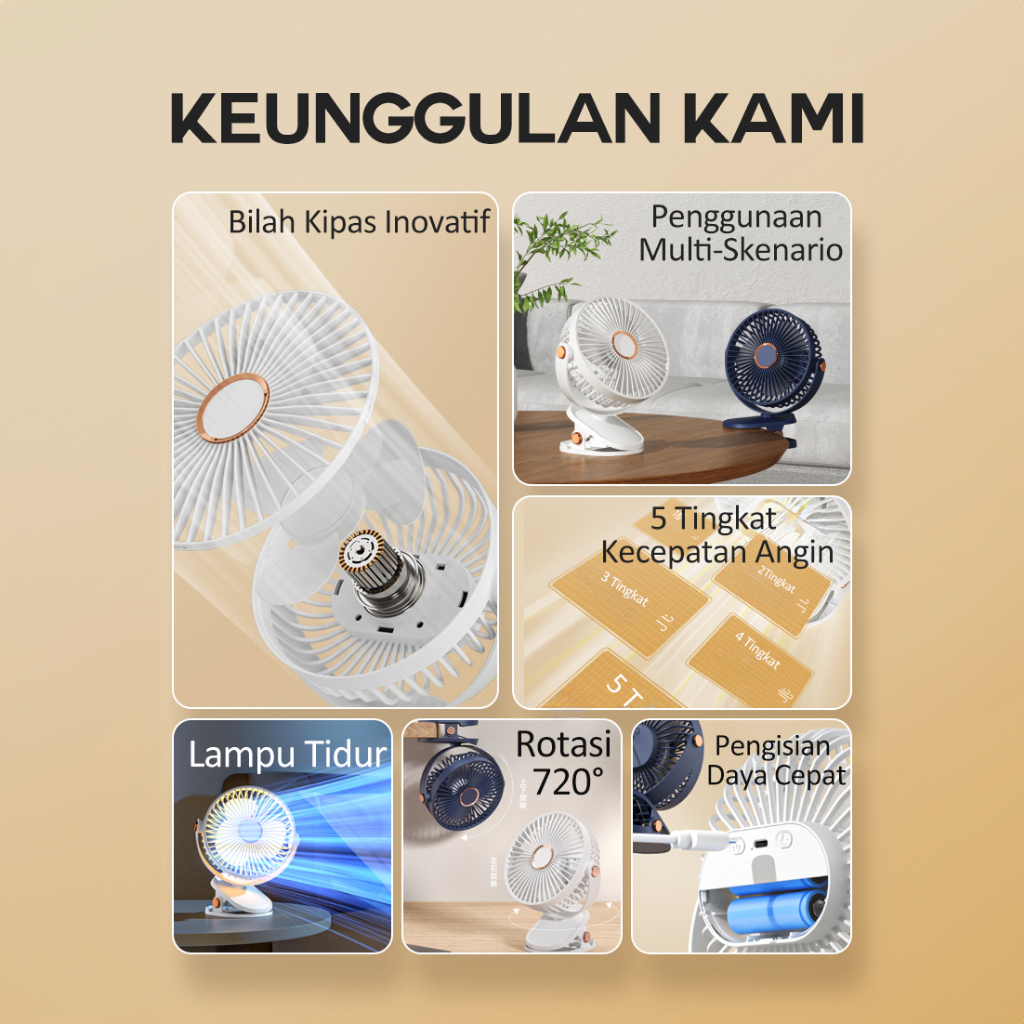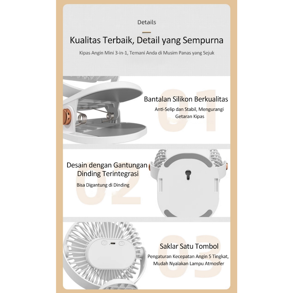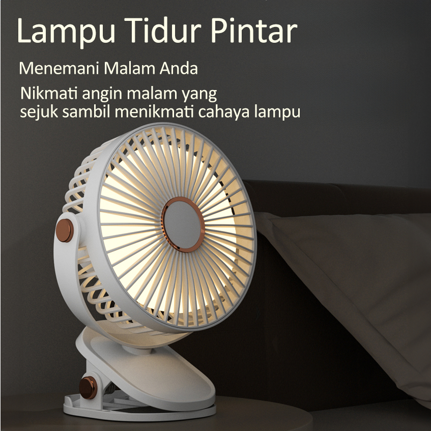 Kipas Mini jepit Kipas Angin Mini USB Klip dengan Lampu Tidur, Bisu, Portabel untuk Siswa & Kantor