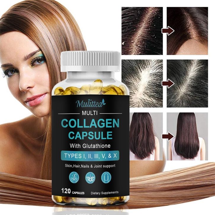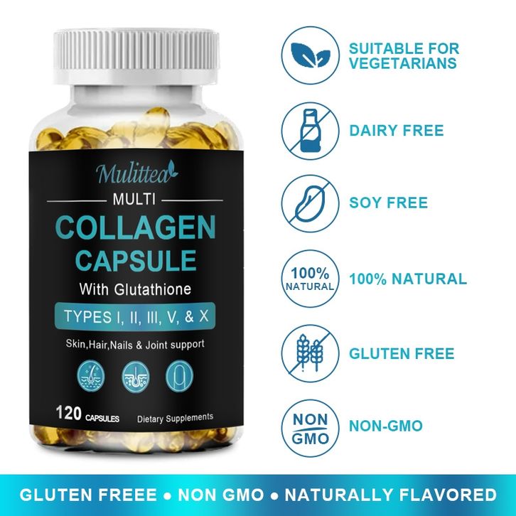 Mulittea Collagen and Glutathione Capsules with Vitamin Canti-oxidation Reduce Cell Damage Whitening and Promote The Hea