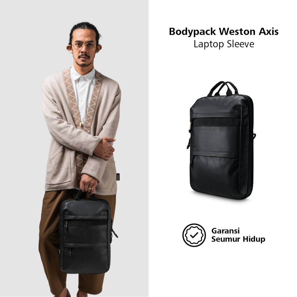 Bodypack Weston Axis Regular Laptop Sleeve 15 Inch Sarung Laptop Classic - Hitam